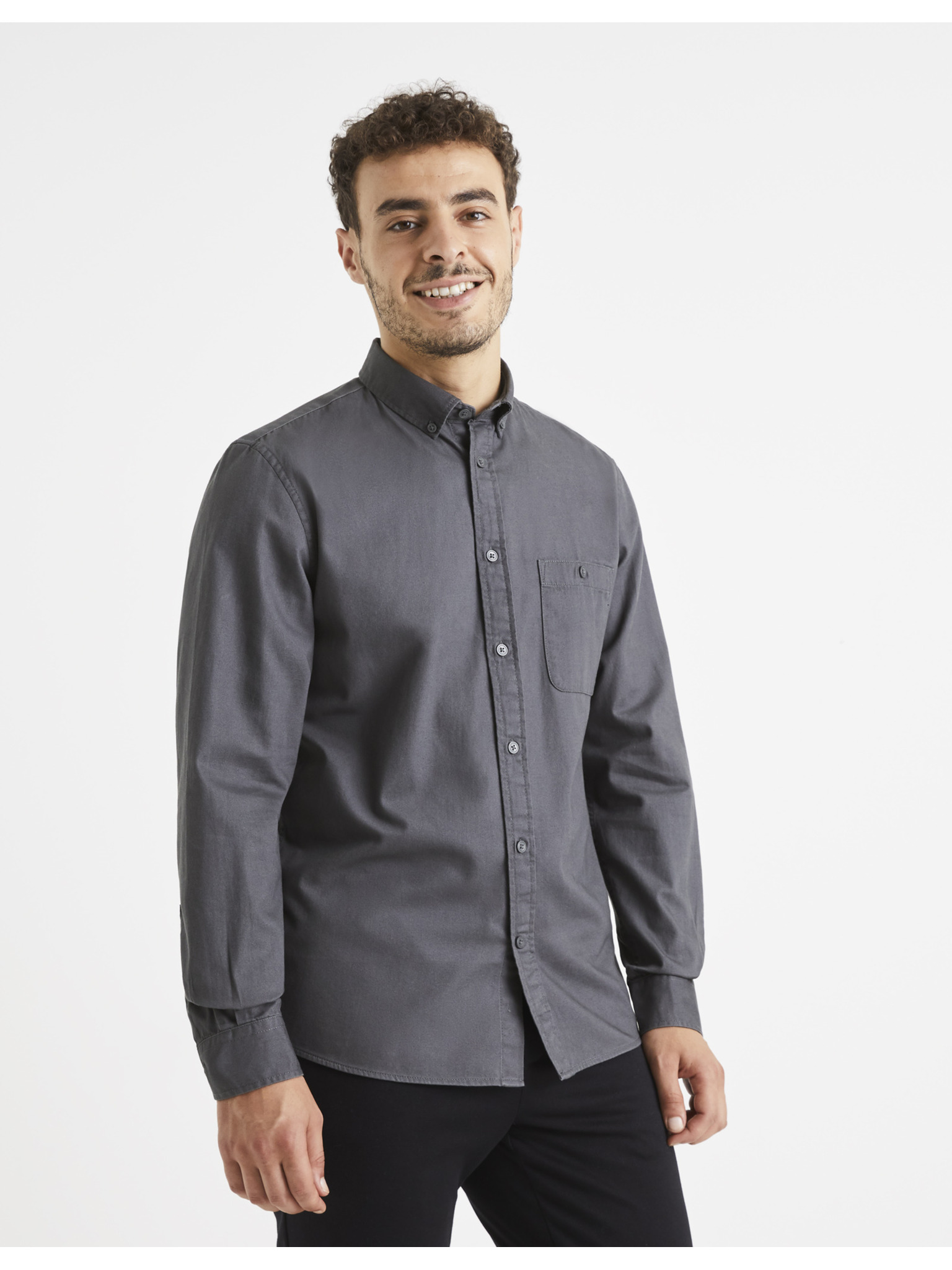 Светлосива мъжка риза на райета Celio Caoxfordy