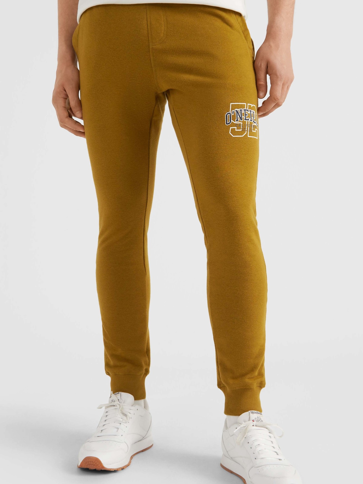 Мъжки спортни панталони с кантове и ребрести крачоли - маслинени