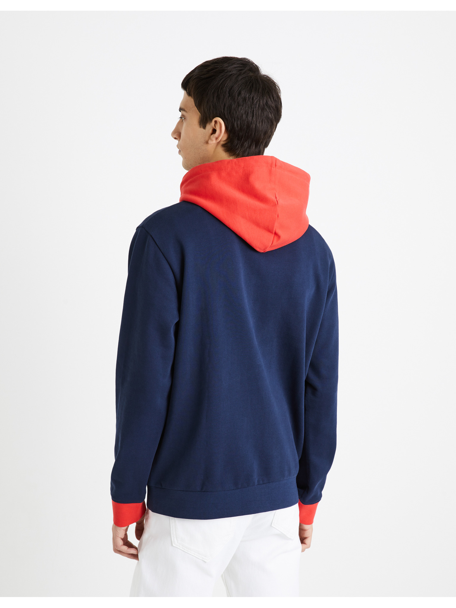 Мъжки суитшърт с контрастно прошиване и качулка - тъмно син V2 OM-SSNZ-0250 Ombre Clothing