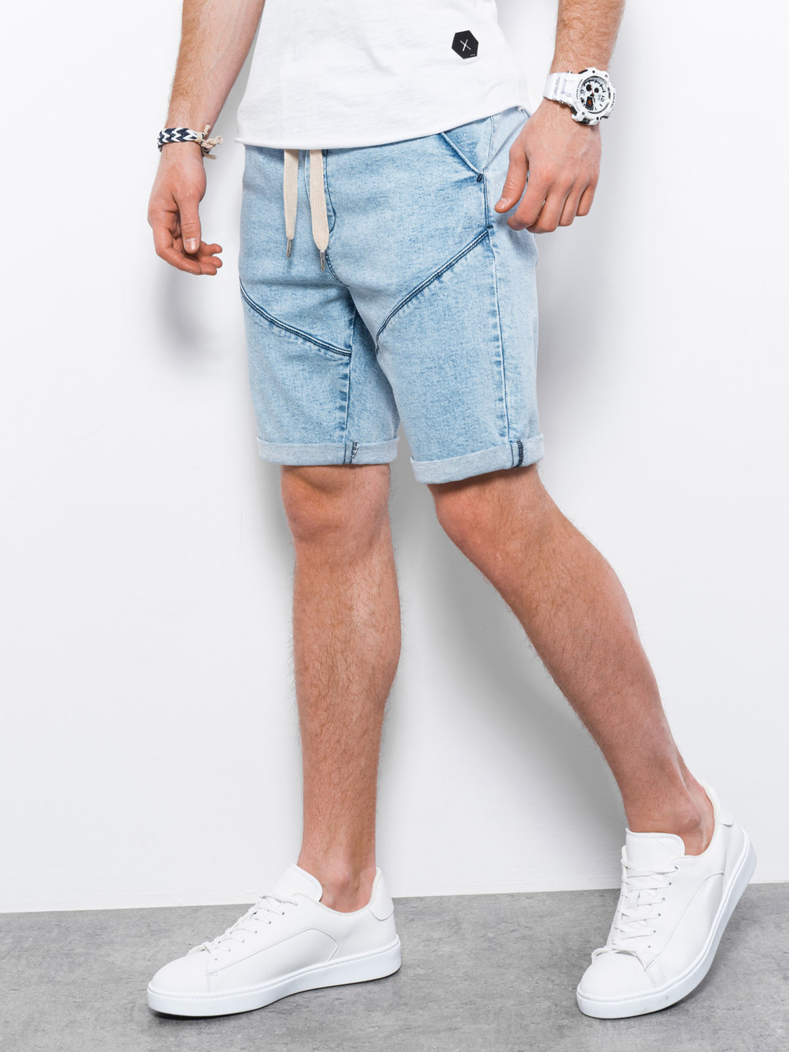 Мъжки дънкови шорти с подгъната крачол - бяло