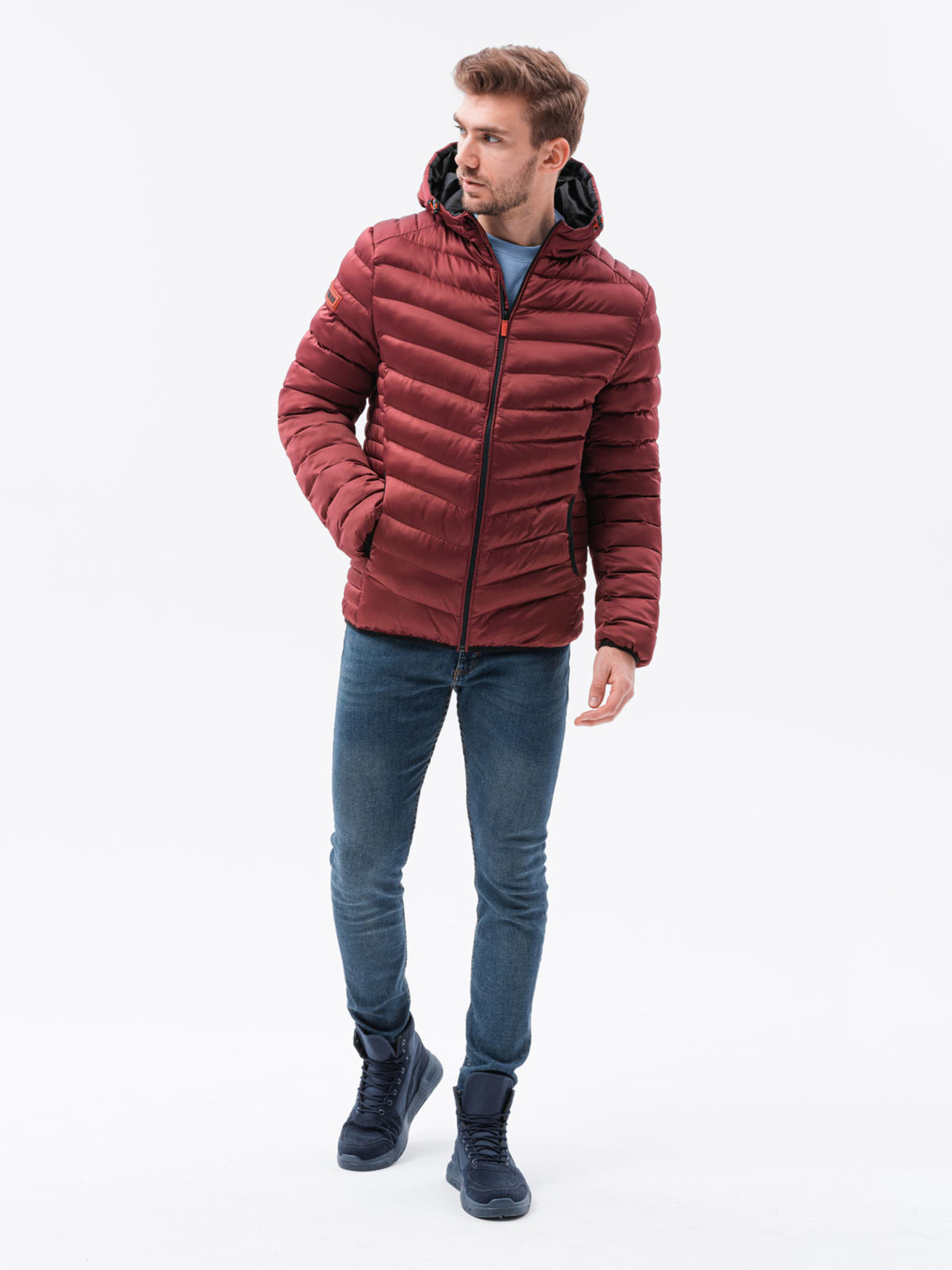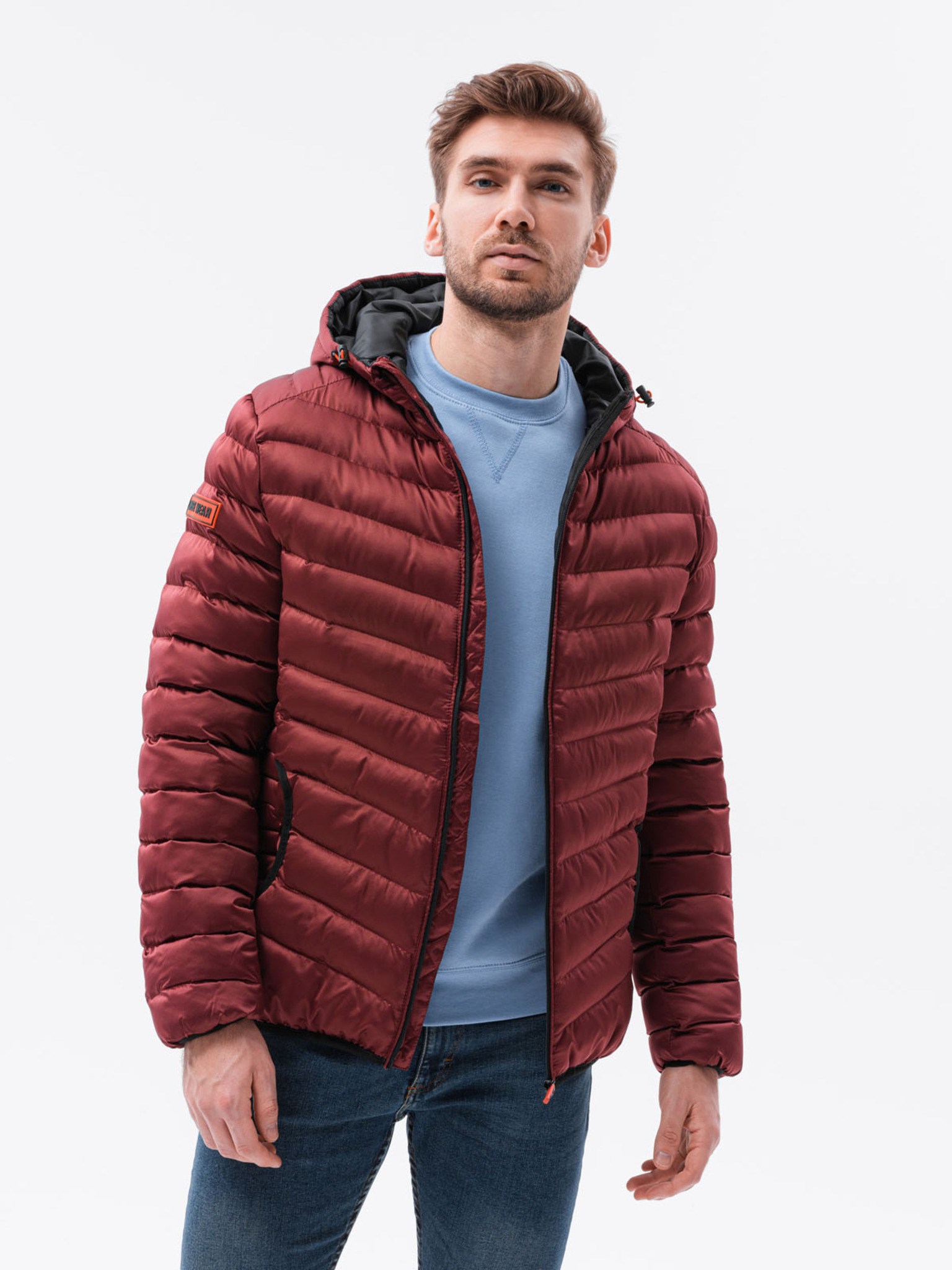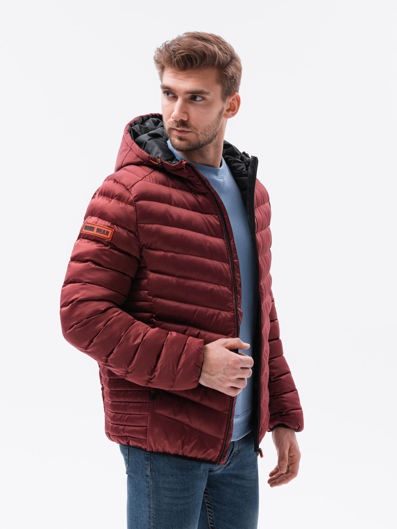 Мъжко олекотено яке в цвят бордо Ombre Облекло BIKER