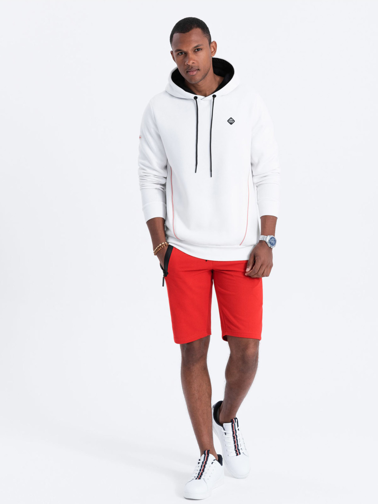 Бял мъжки суитшърт с качулка и щамп Ombre Clothing