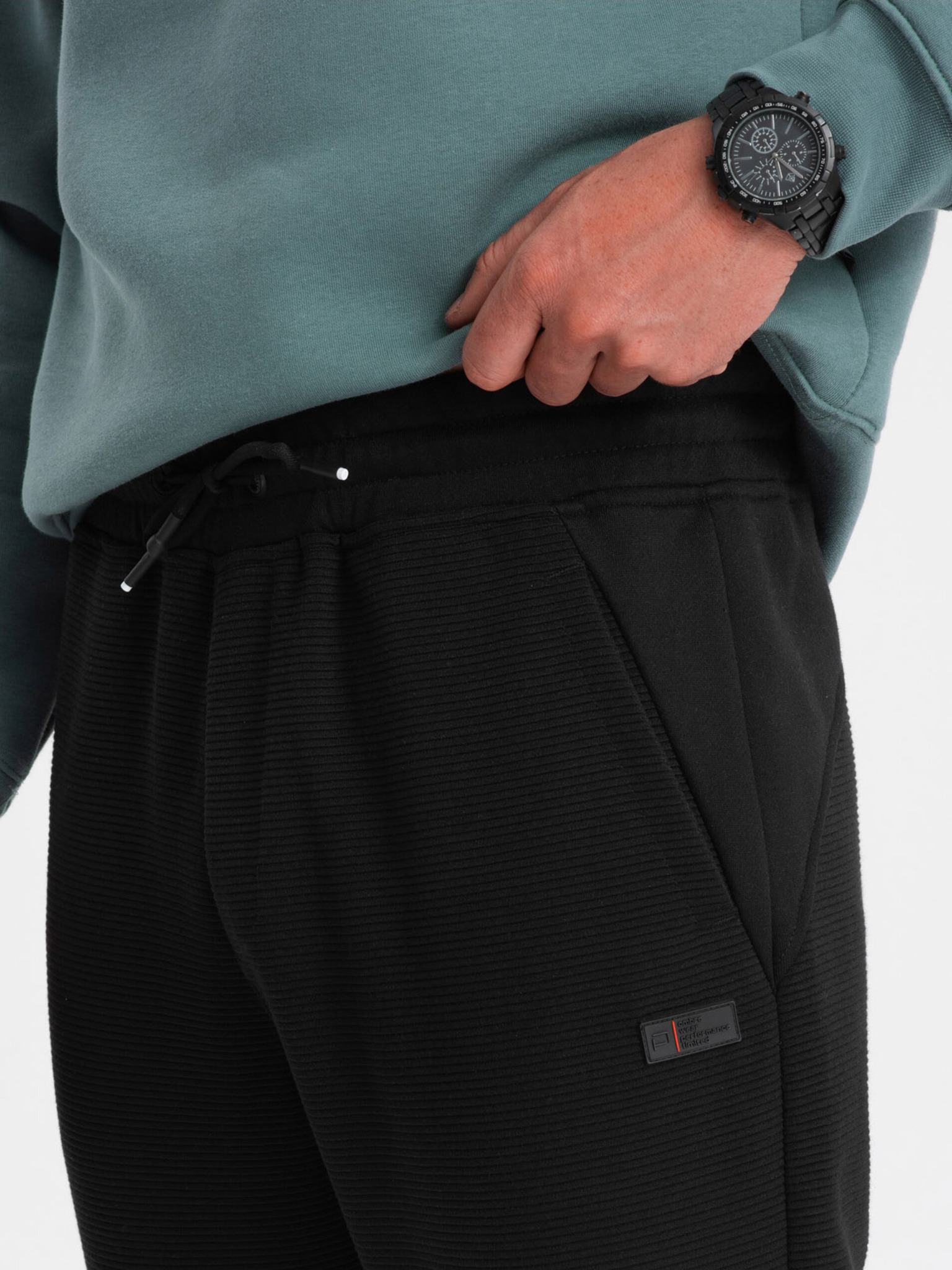 Мъжки спортни панталони с ребрести маншети и декоративен цип Ombre Clothing