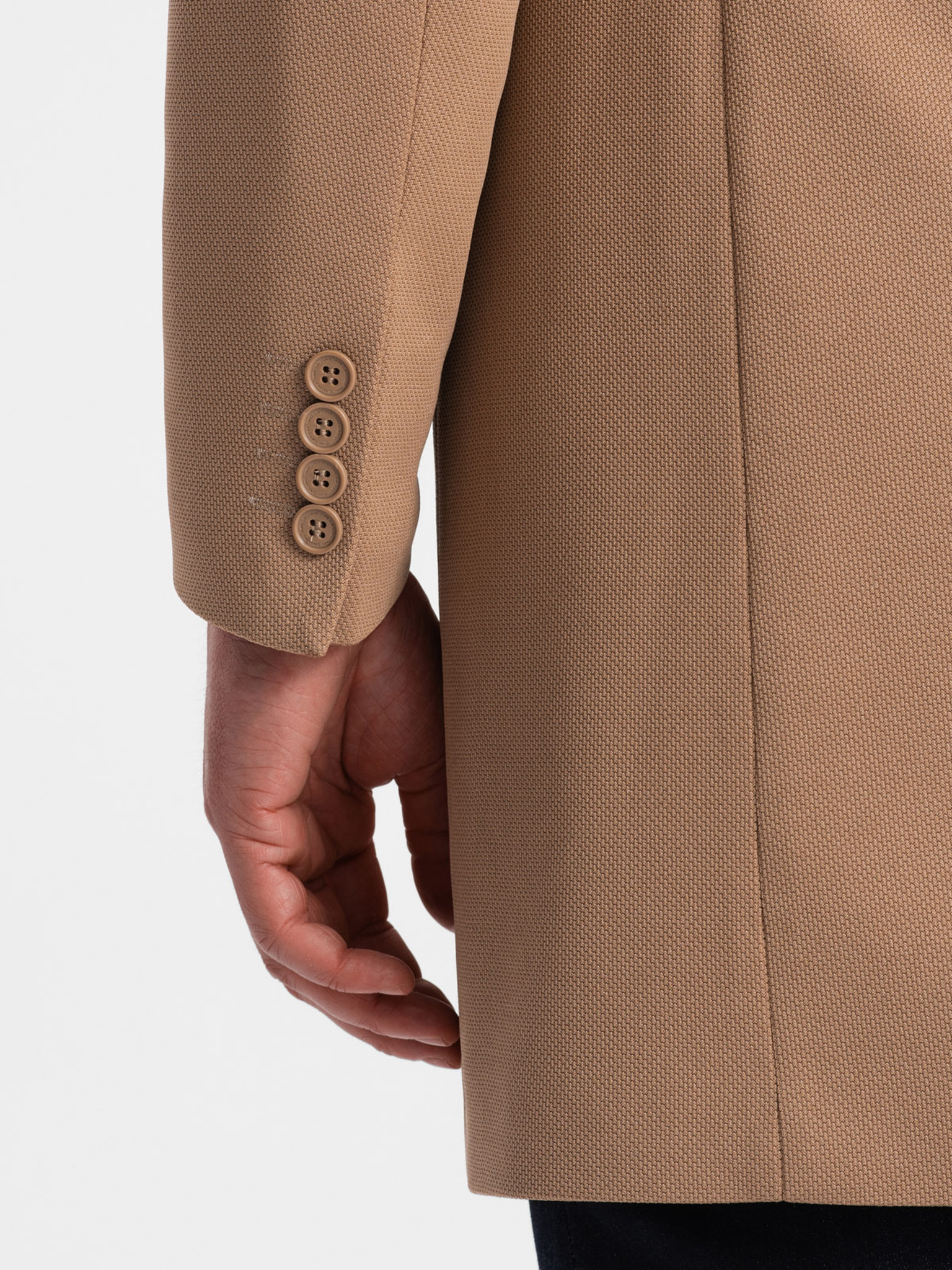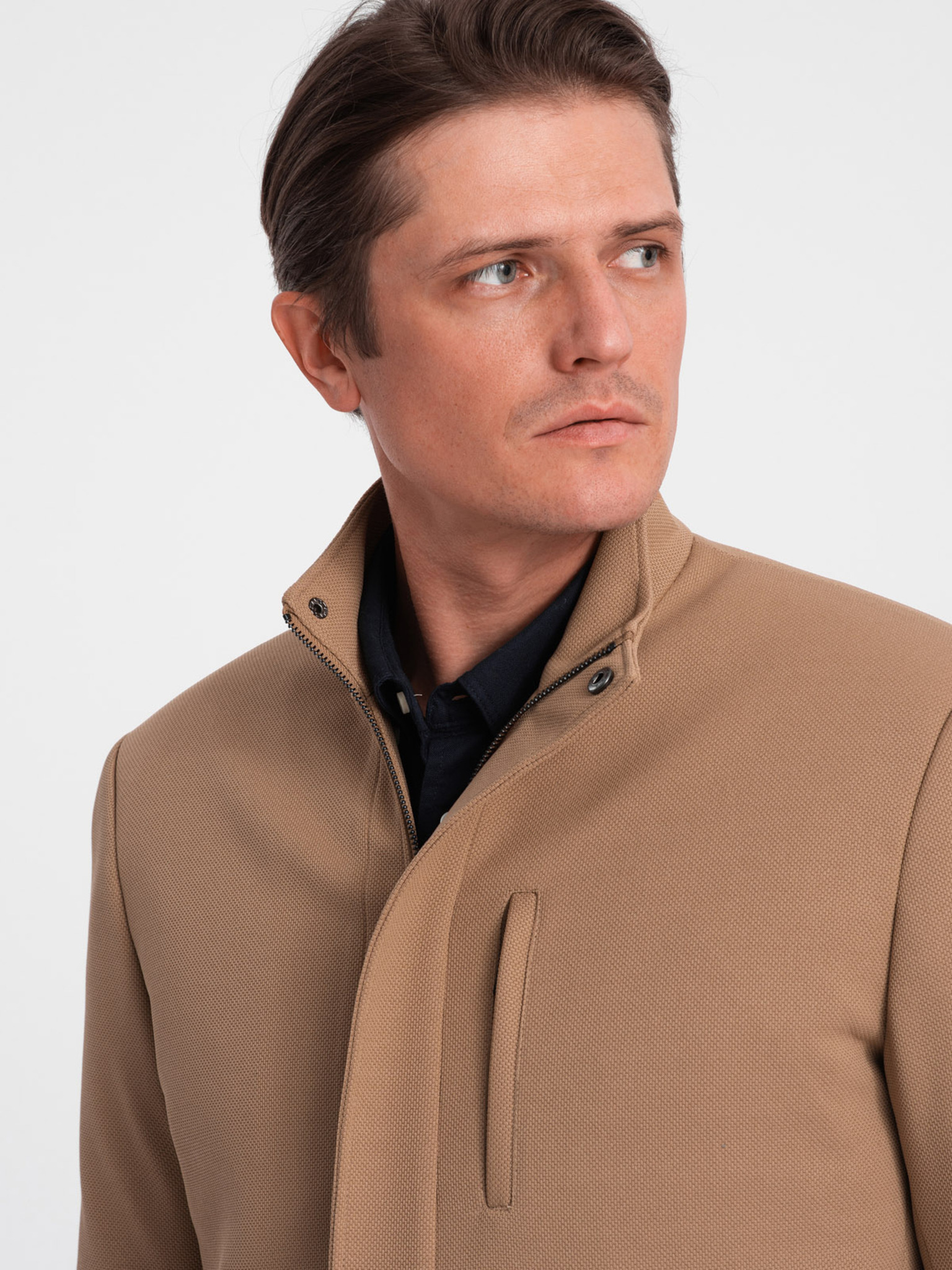 Мъжко структурирано палто с висок яка - светлокафяво V4 OM-COWC-0136 Ombre Clothing