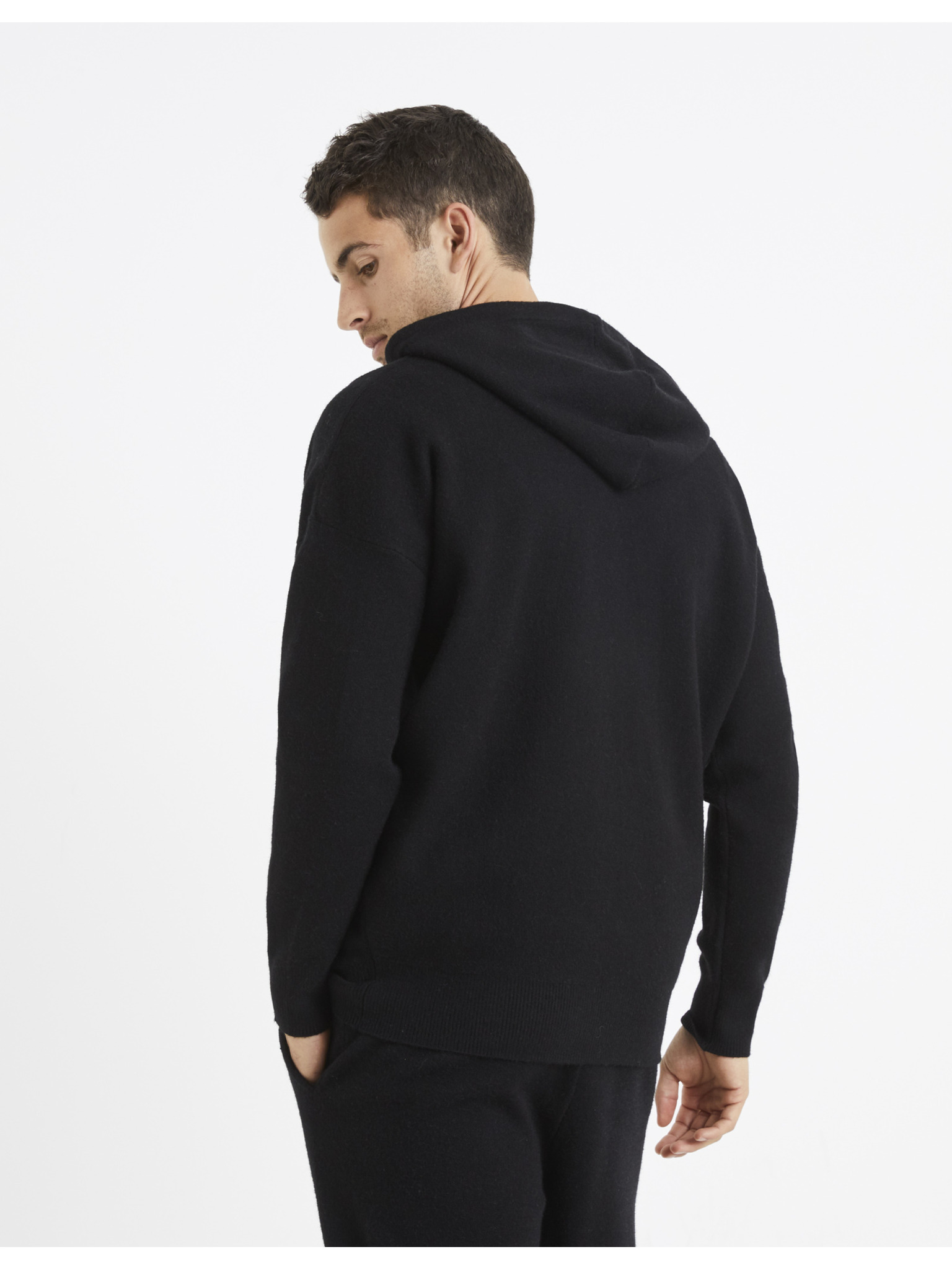 Мъжки суитшърт със стойка и качулка - черен V1 OM-SSZP-0216 Ombre Clothing