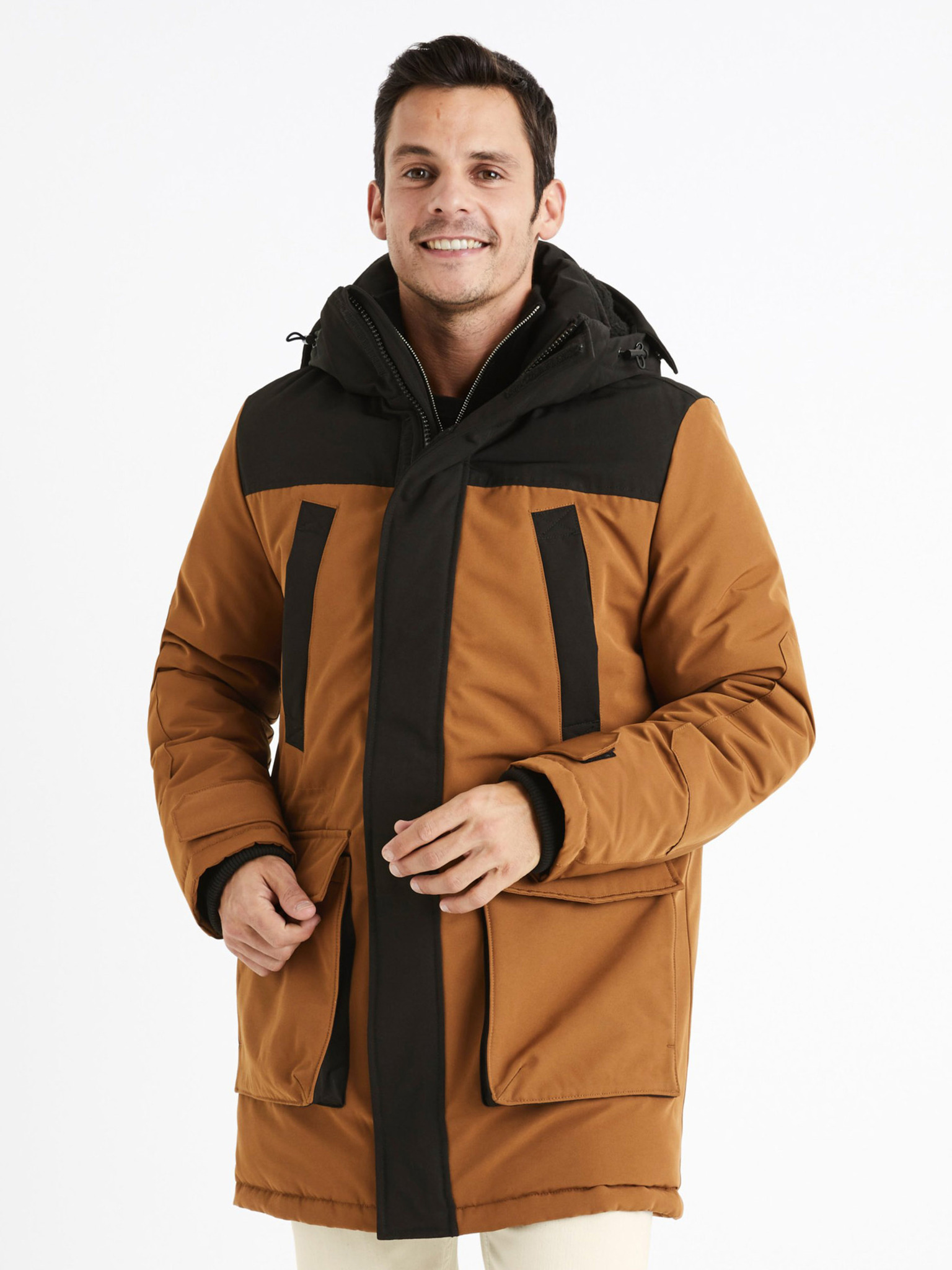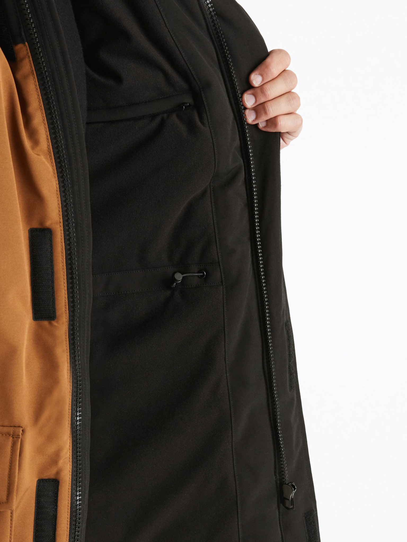 Мъжко палто с асиметрично закопчаване и висока яка светлокафяво Ombre Clothing