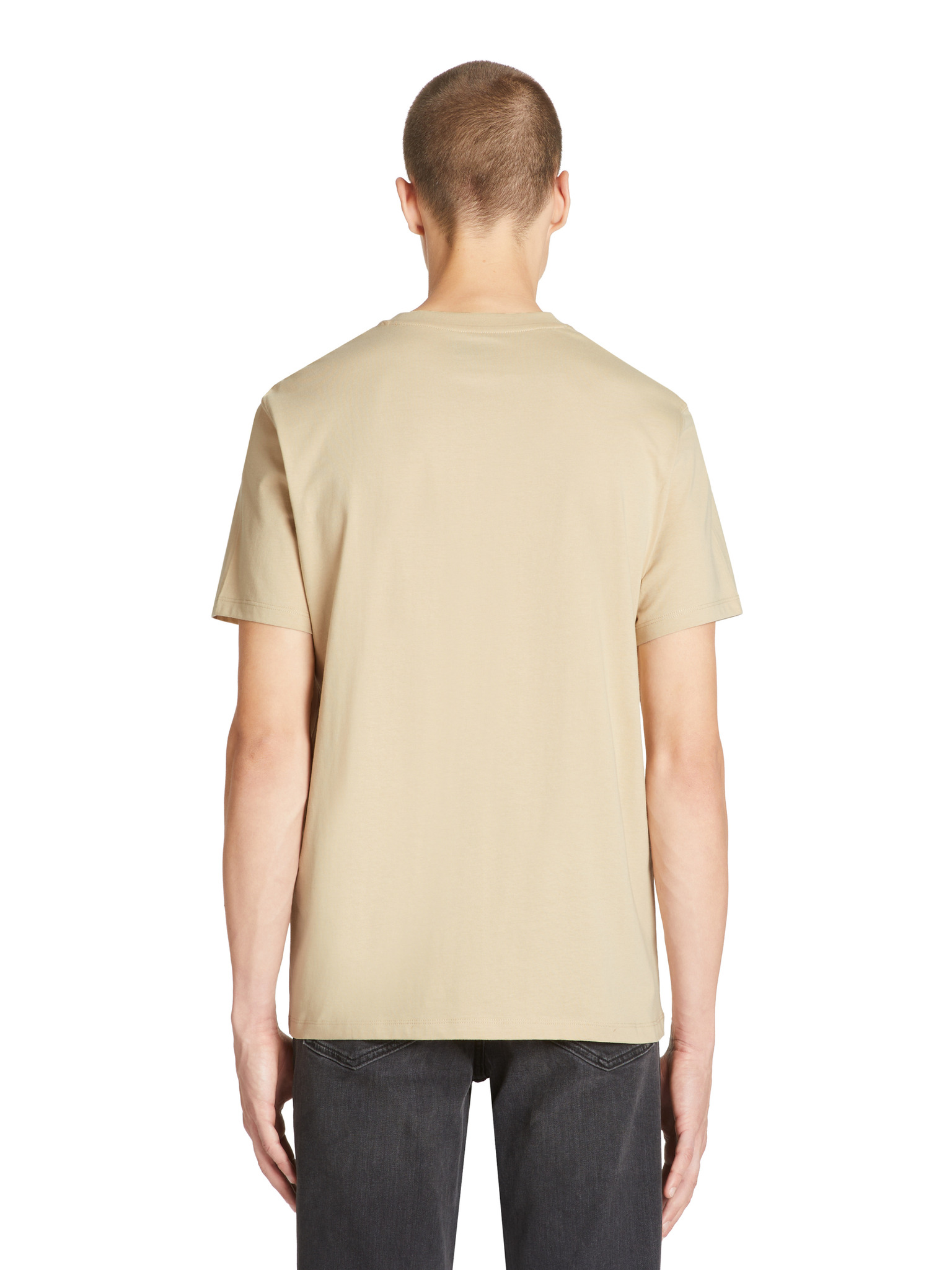 Памучна тениска с печат на гърдите и гърба - тъмно бежова