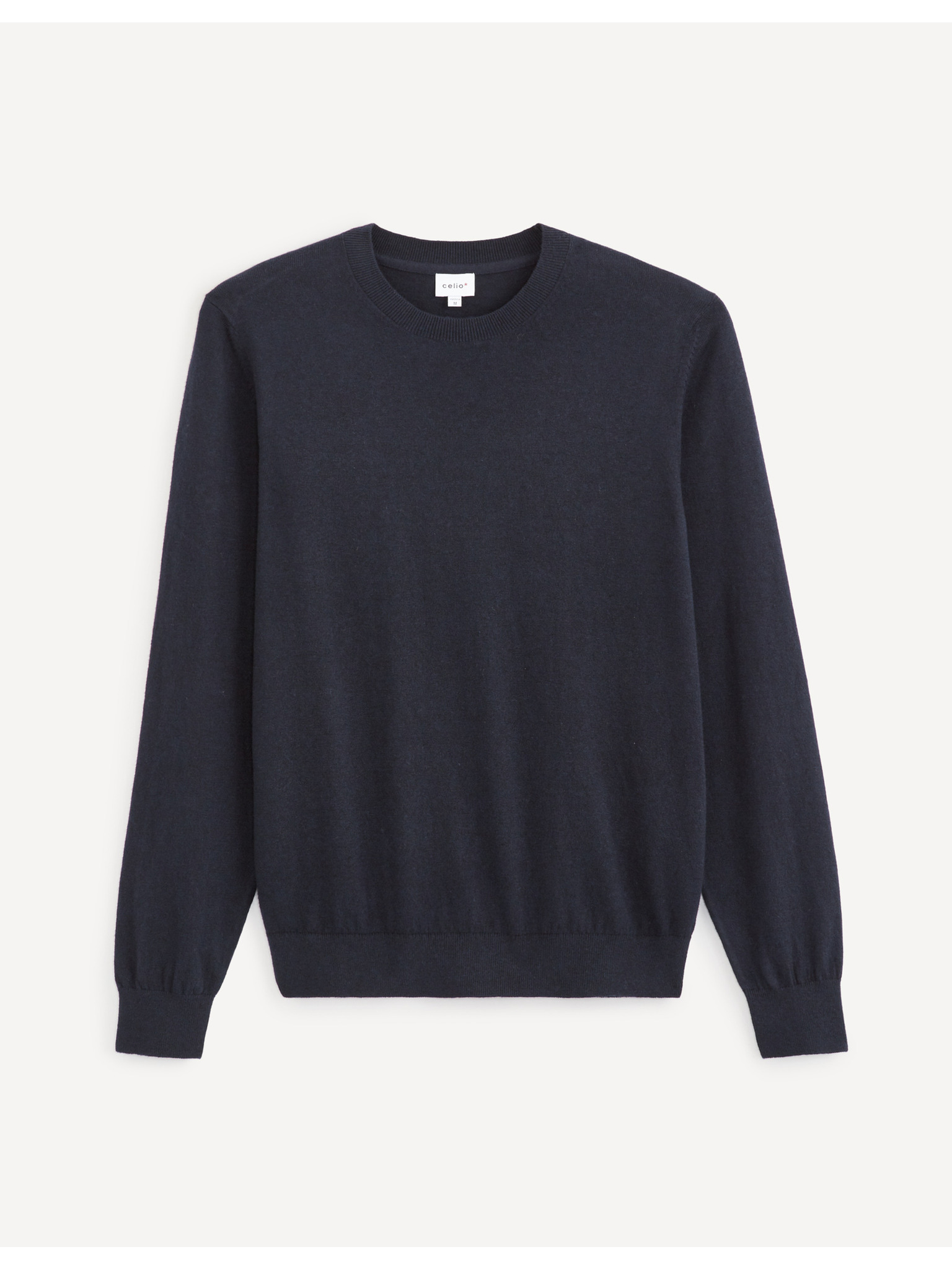Мъжки пуловер с кръгло деколте от еластичен трикотаж в класическо плетене - тъмно синьо V1 OM-SWSW-0183 Ombre Clothing