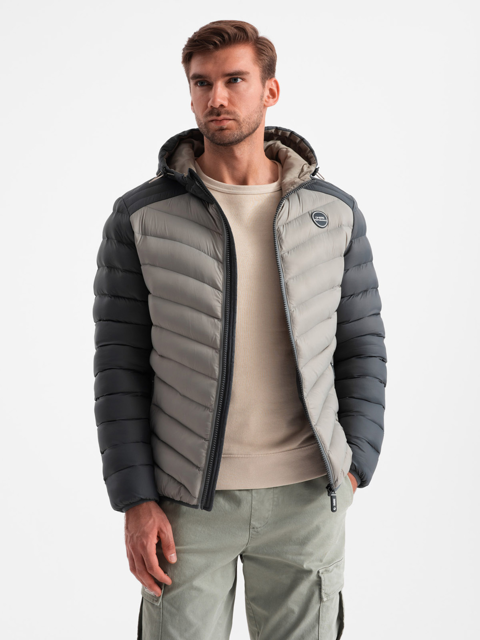Бежово мъжко леко ватирано яке Ombre Clothing