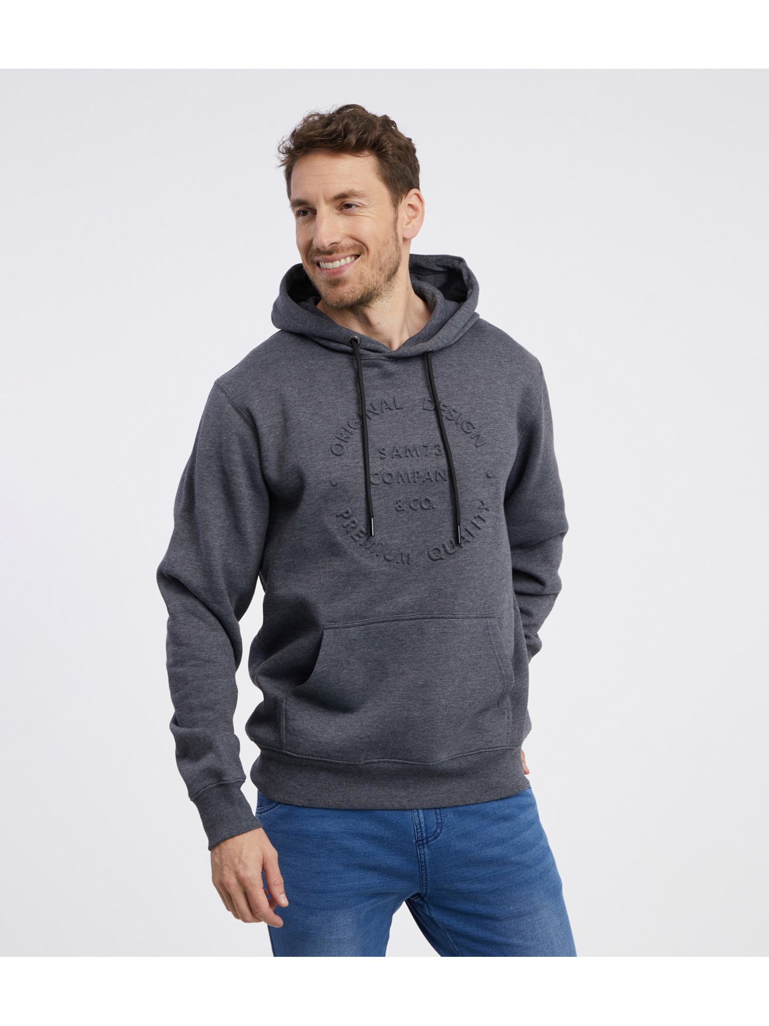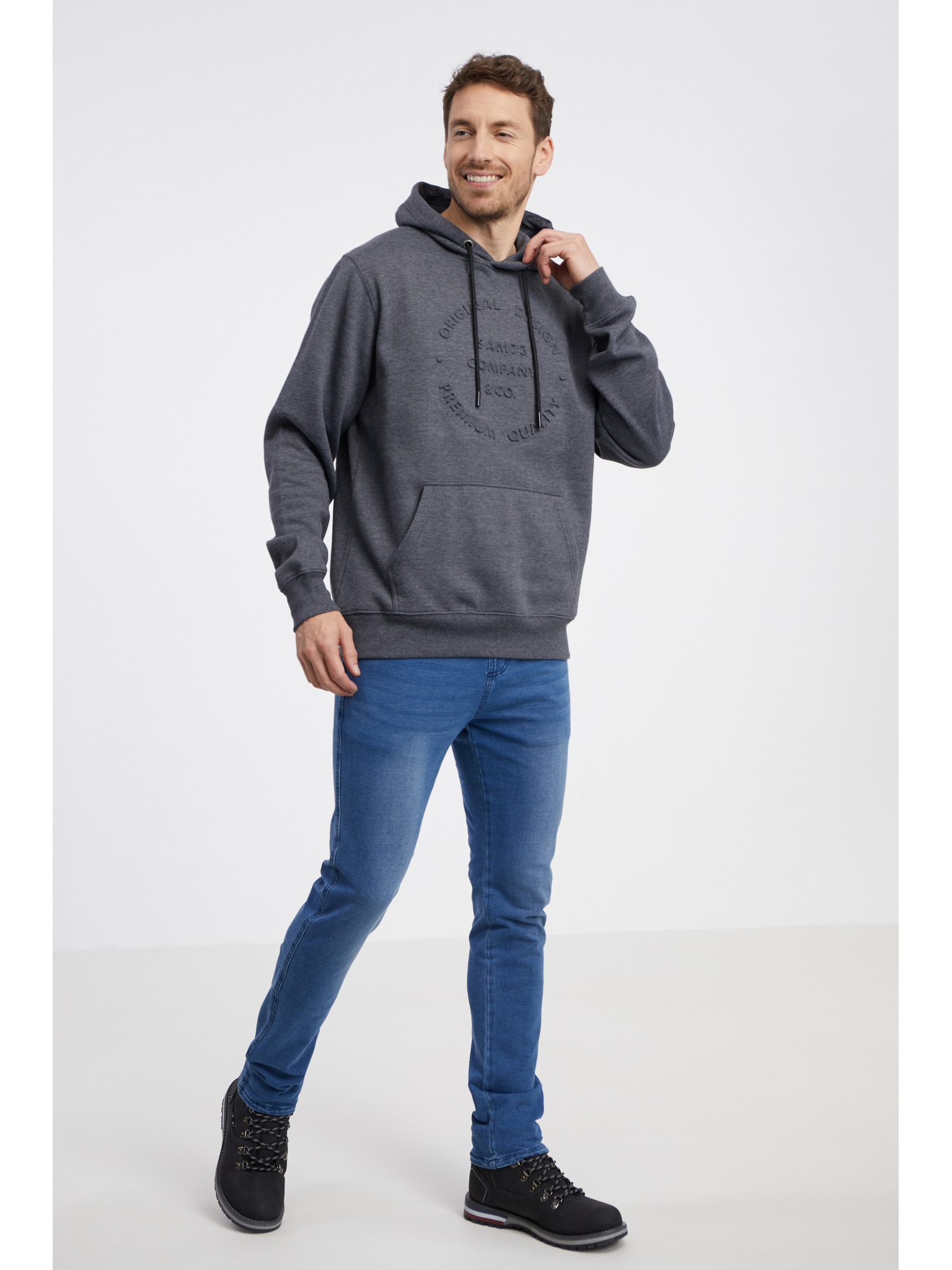 Син мъжки суитшърт с качулка с цип SAM 73 Emanuel