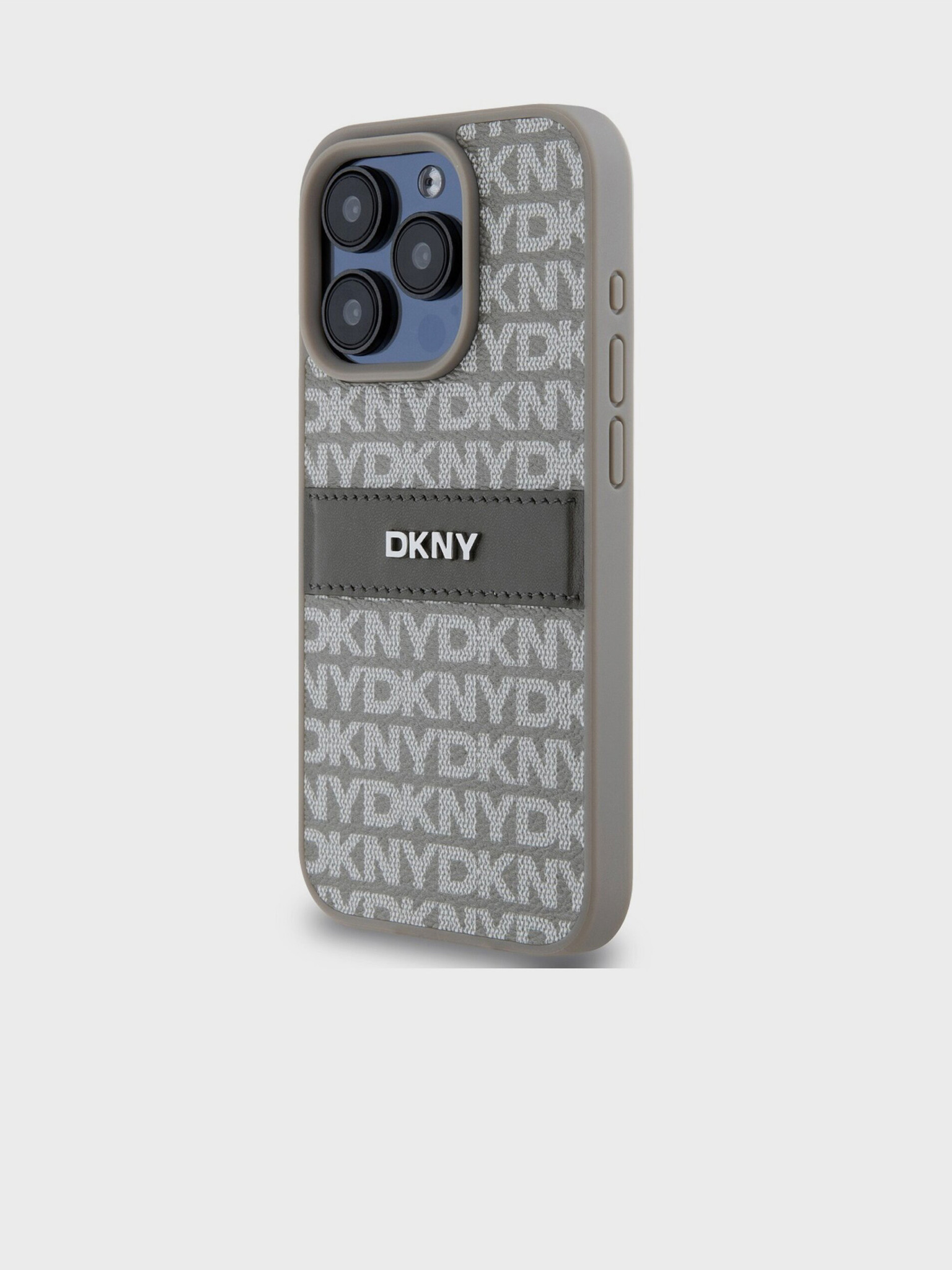 DKNY PU Leather Repeat Pattern Tonal Stripe Заден капак за iPhone 16 Pro Beige