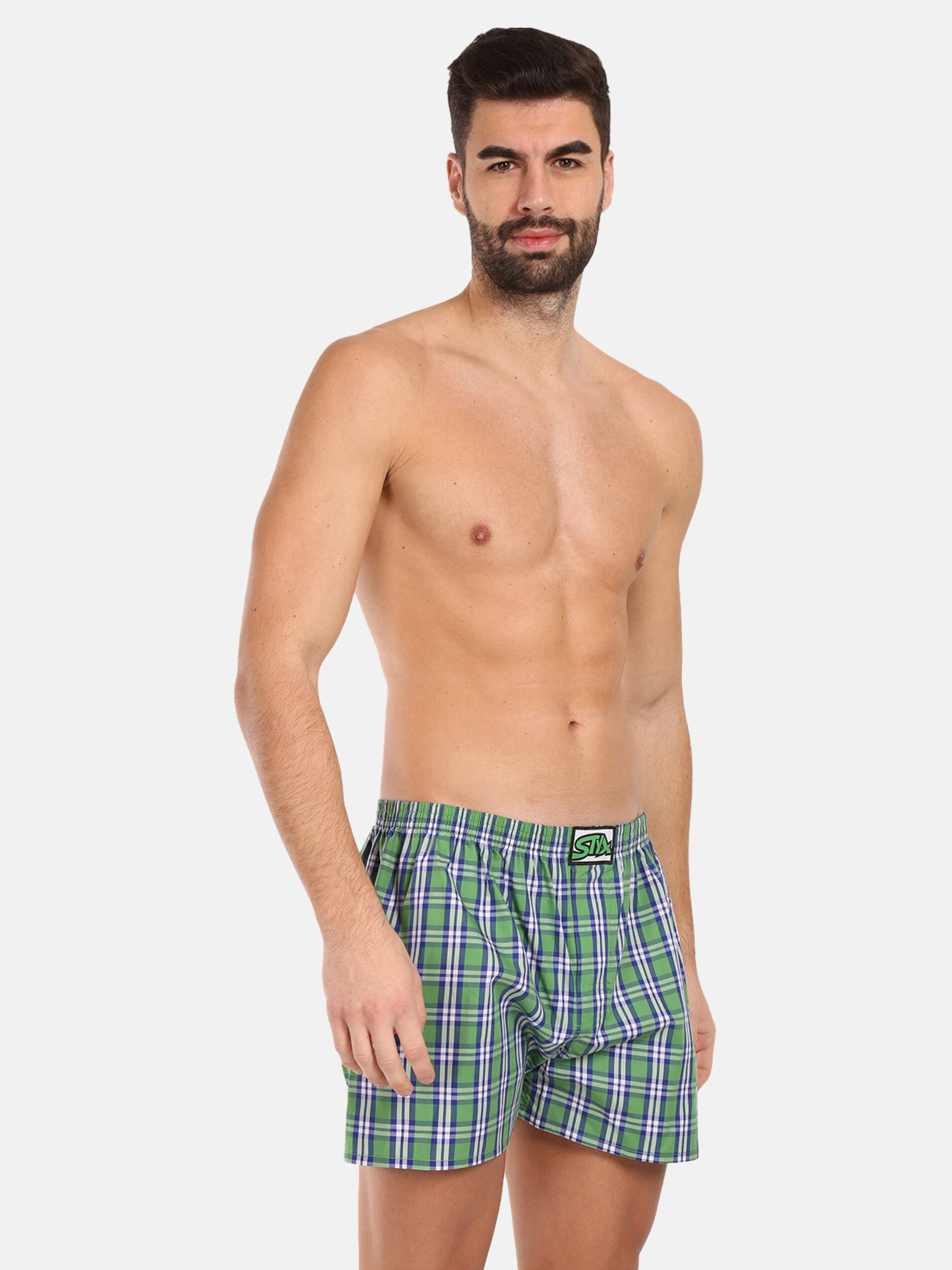 Комплект от три мъжки къси панталони с шарка в зелено, червено и черно STYX