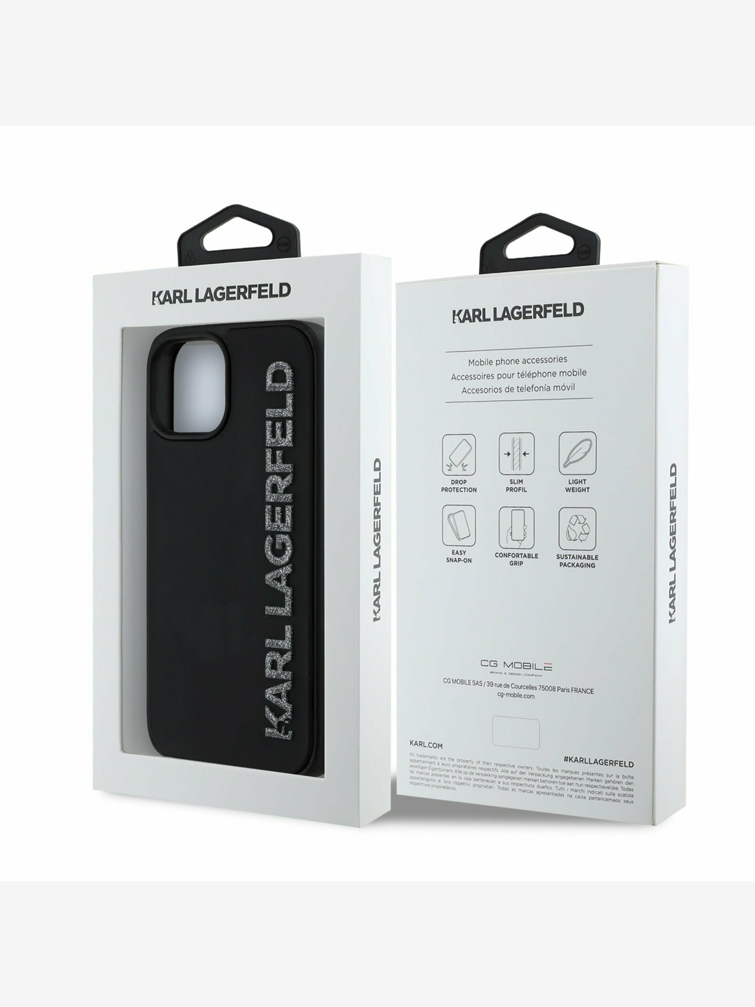 Karl Lagerfeld IML Брокат Карл и Шупет Скица MagSafe Заден Капак за iPhone 15 Pro Max Черен