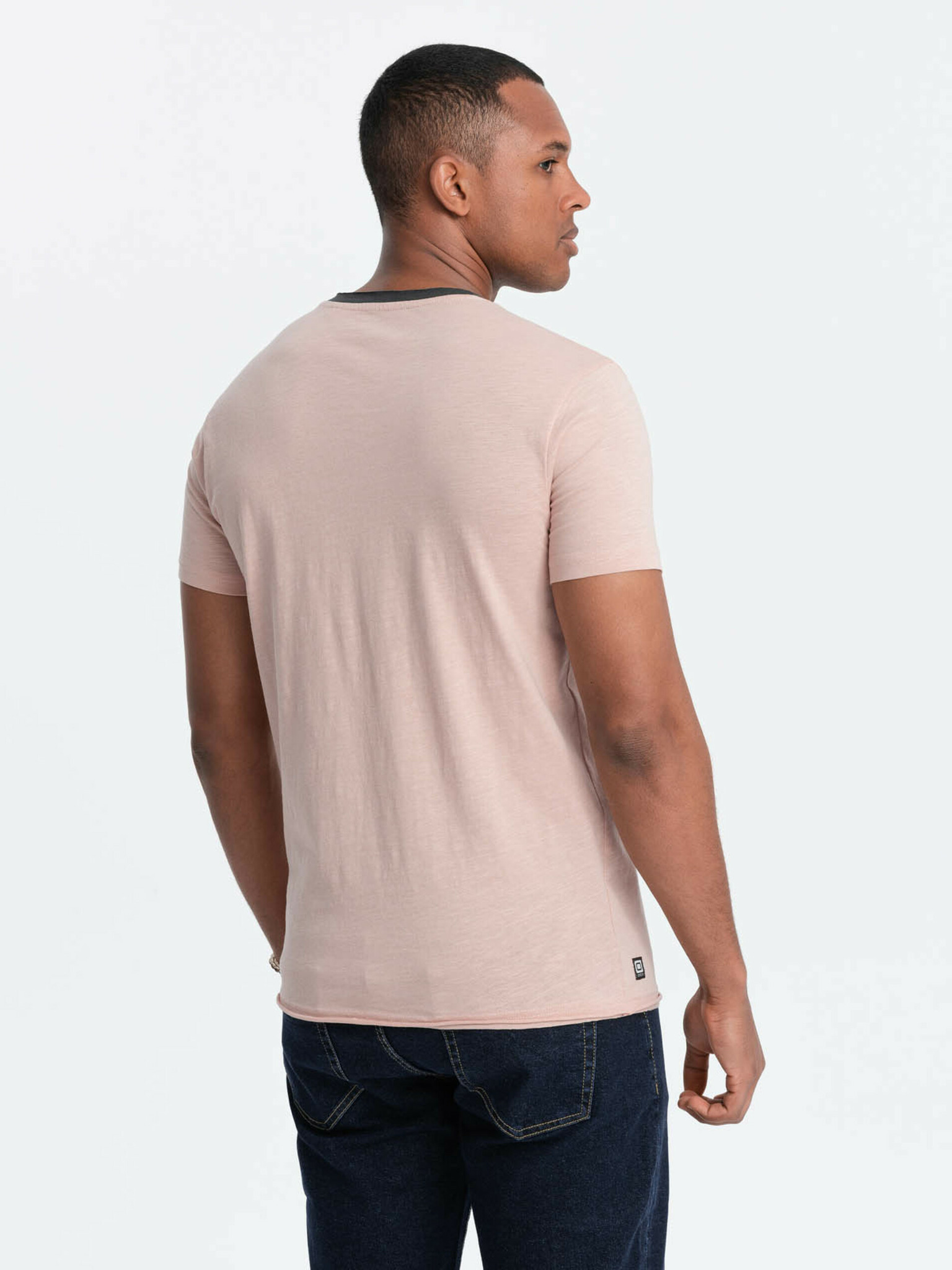 Мъжка класическа памучна тениска BASIC с деколте - розова