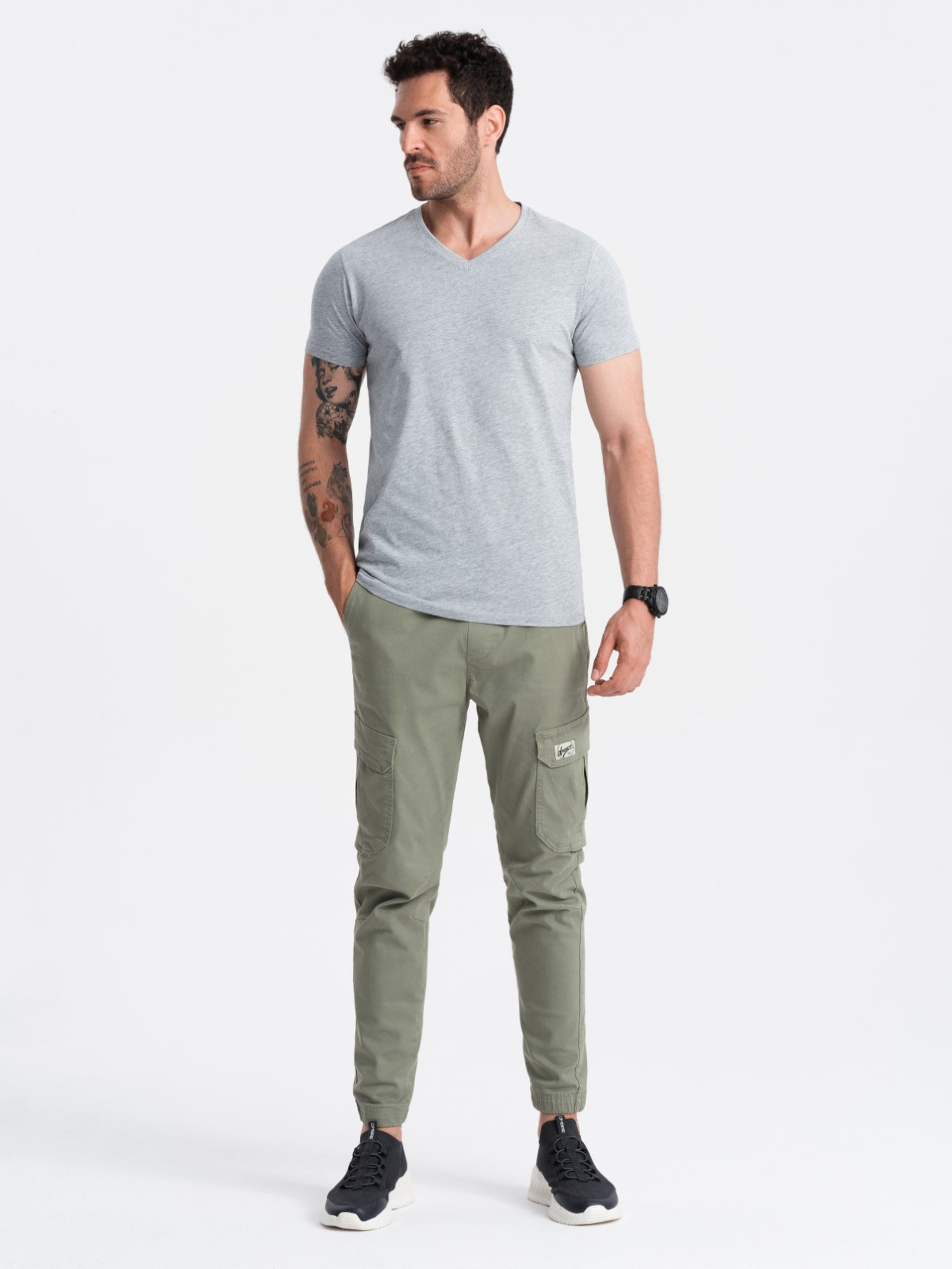 Тъмно сива мъжка основна тениска с V-образно деколте Ombre Clothing