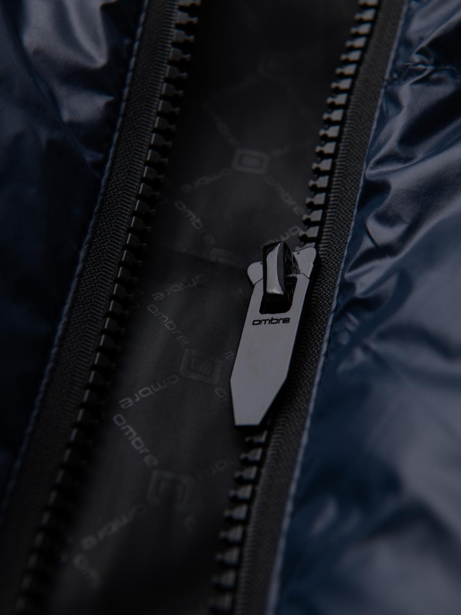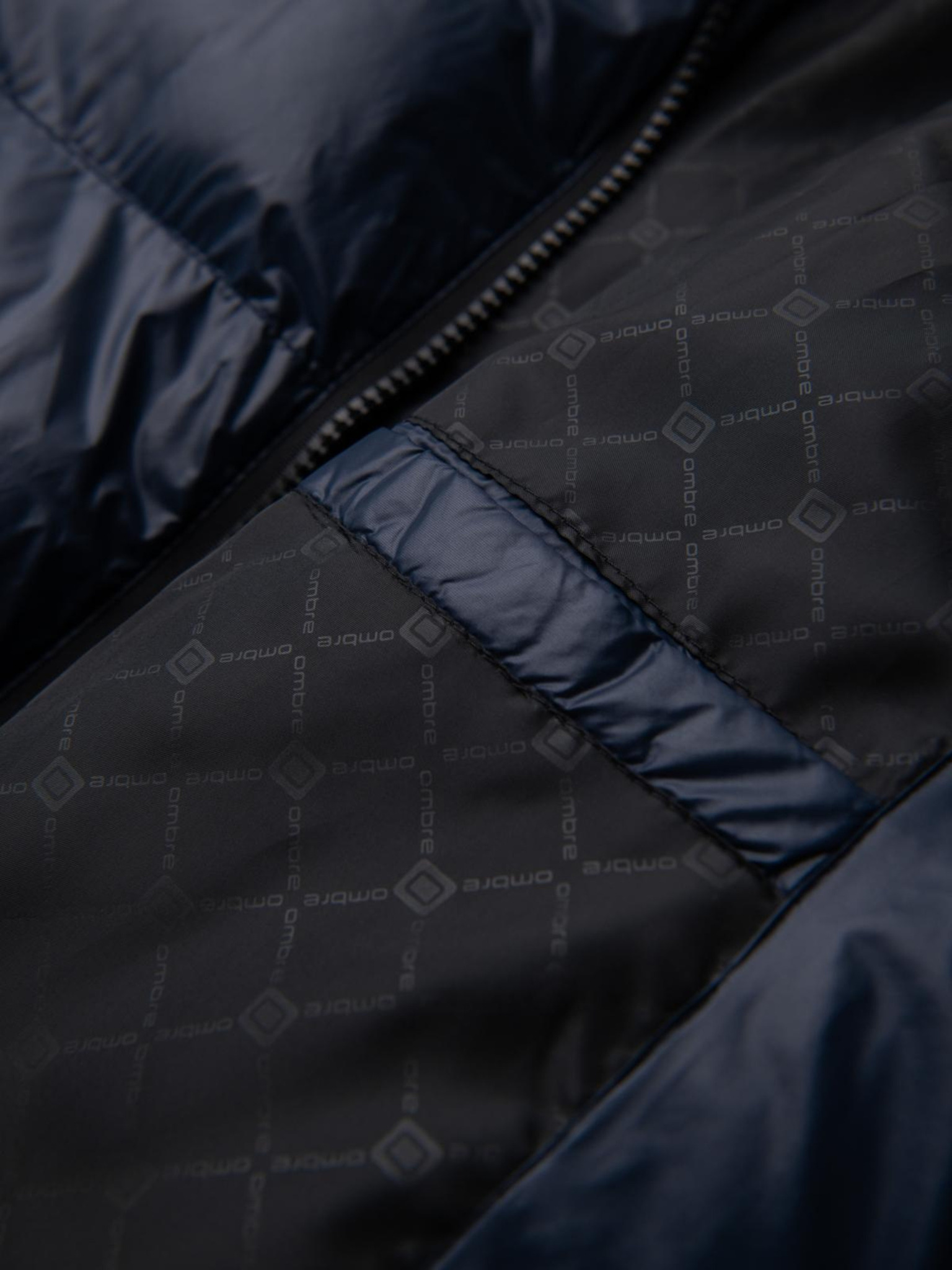 Мъжко яке с качулка и геометрично диамантно прошиване - тъмно синьо V2 OM-JAHP-0237 Ombre Clothing