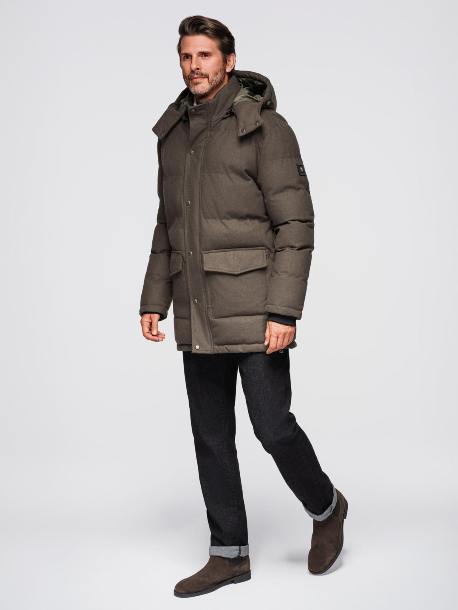 Мъжко ватирано дълго яке тип "парка" с подвижна качулка Ombre Clothing