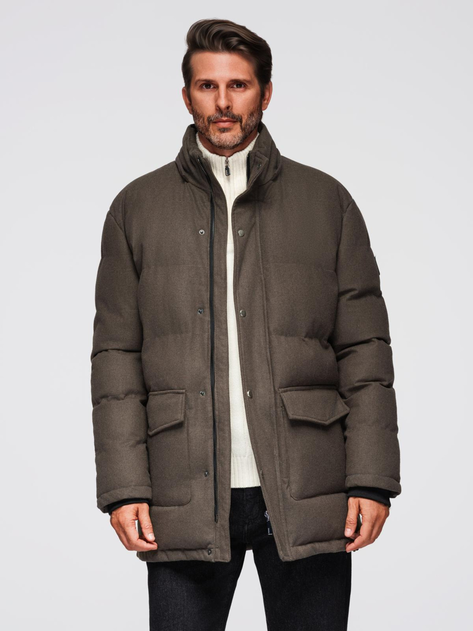 Мъжко ватирано дълго яке с големи джобове Ombre Clothing