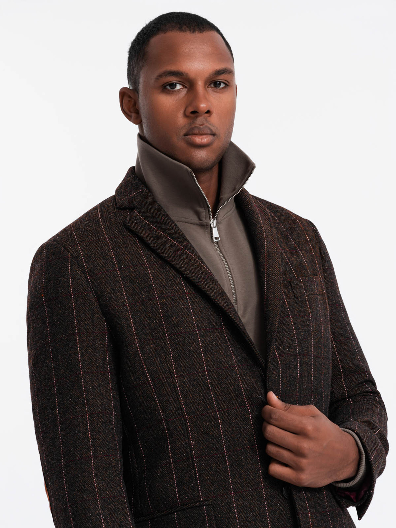 Кафяв мъжки блейзър с фино каре Ombre Clothing