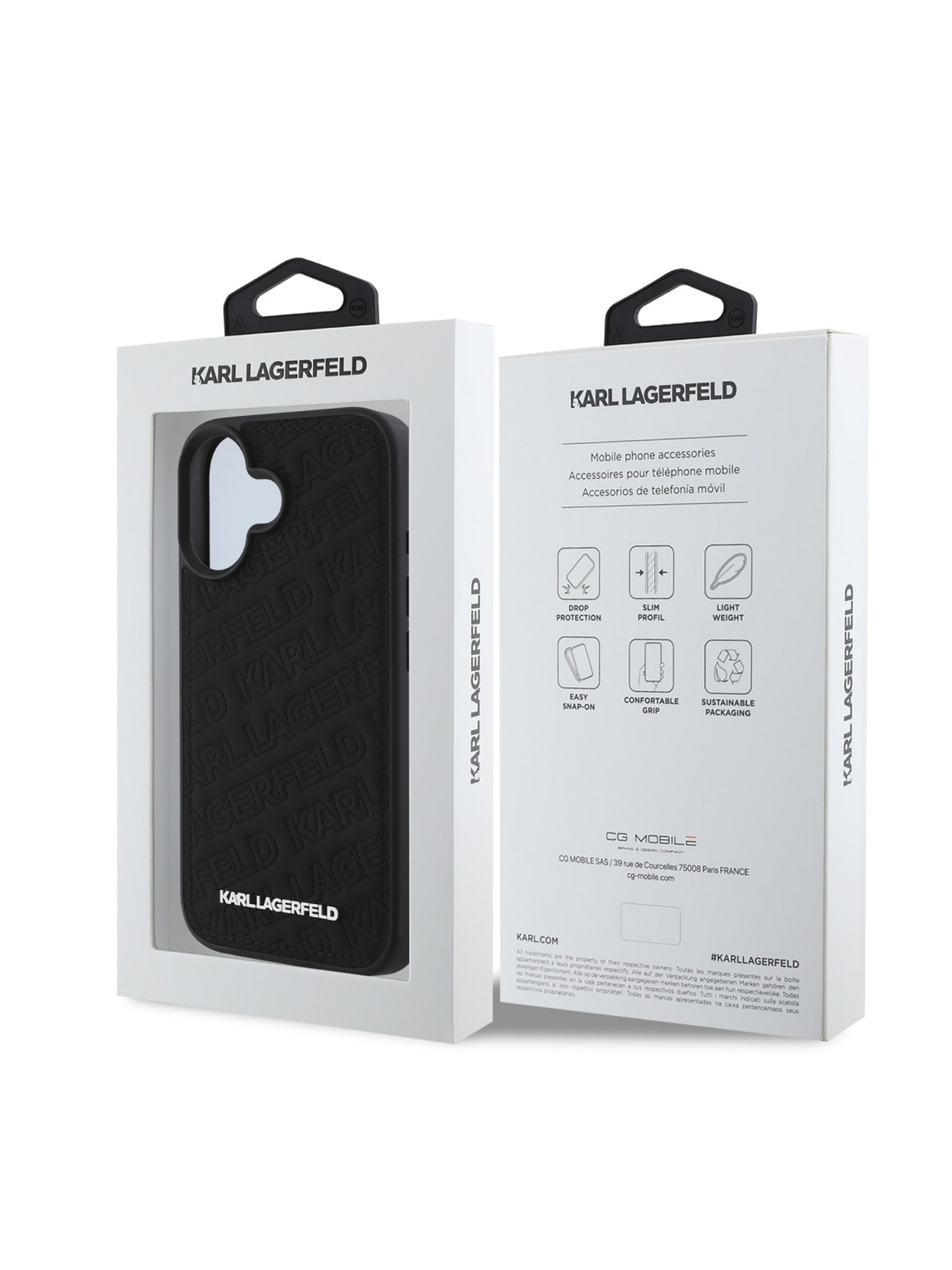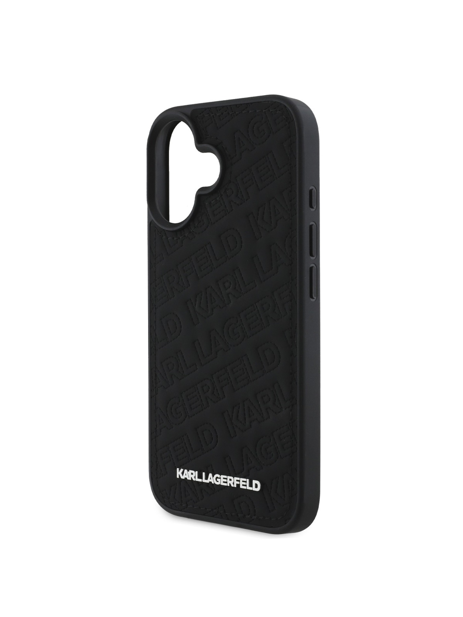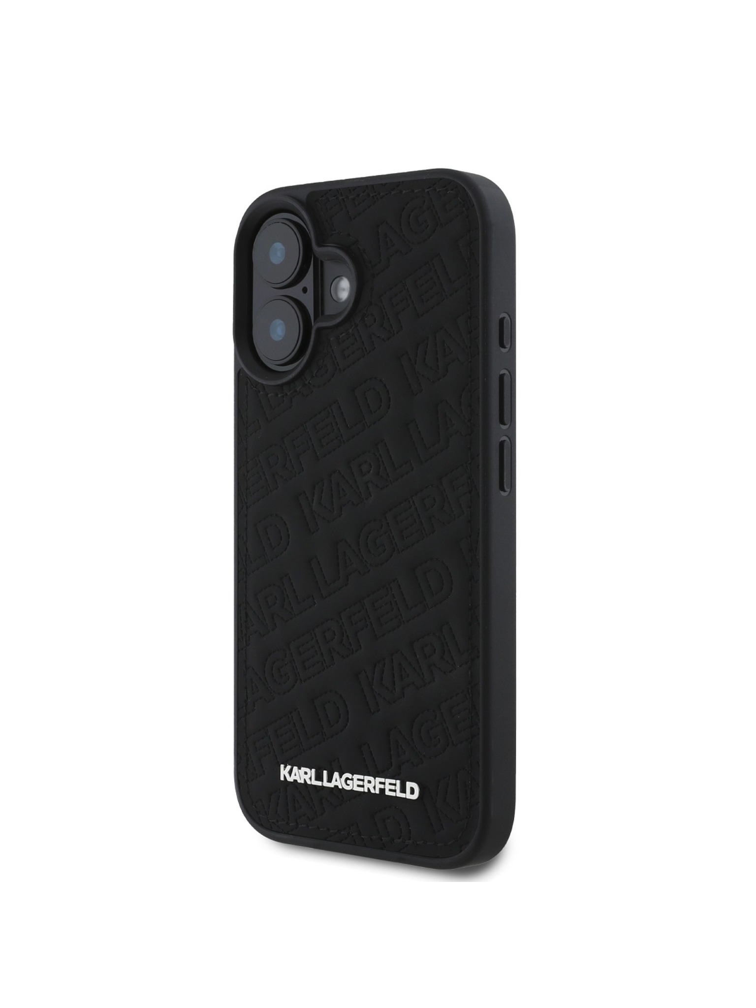 Karl Lagerfeld Релефна Еко Кожа Повторено Лого MagSafe Заден Капак за iPhone 16 - Черен