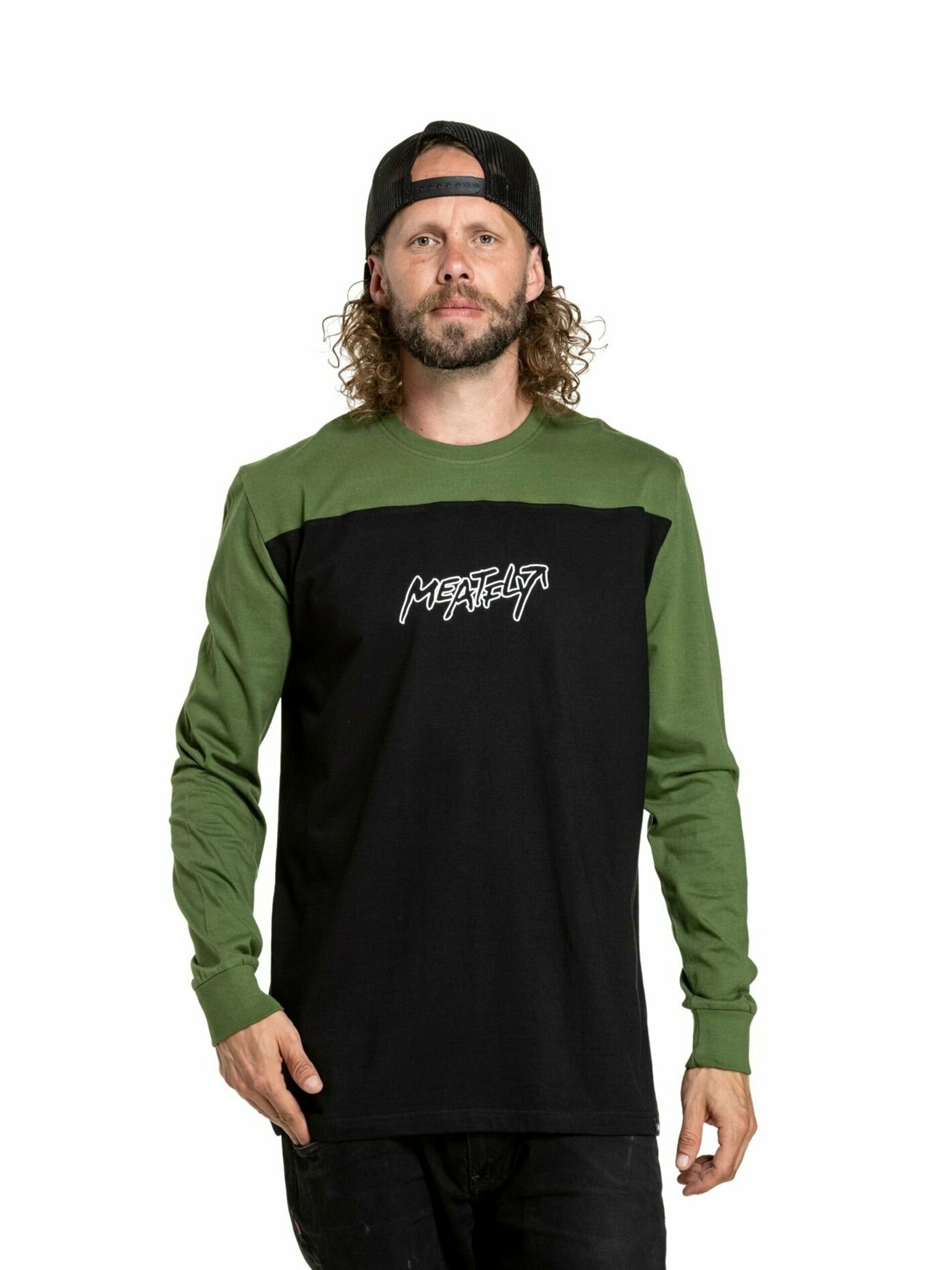 Meatfly мъжка тениска с дълъг ръкав Judgement Маслено зелено/Черно | Зелена | Размер