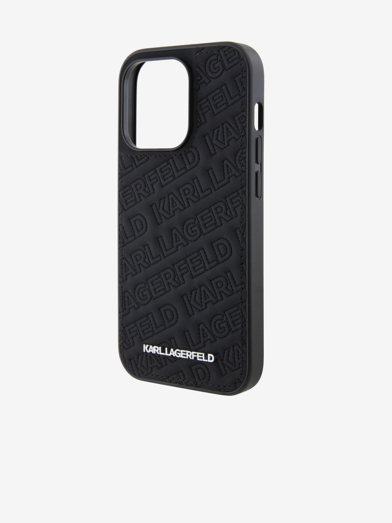 Karl Lagerfeld Релефна Еко Кожа Повторено Лого MagSafe Заден Капак за iPhone 16 - Черен