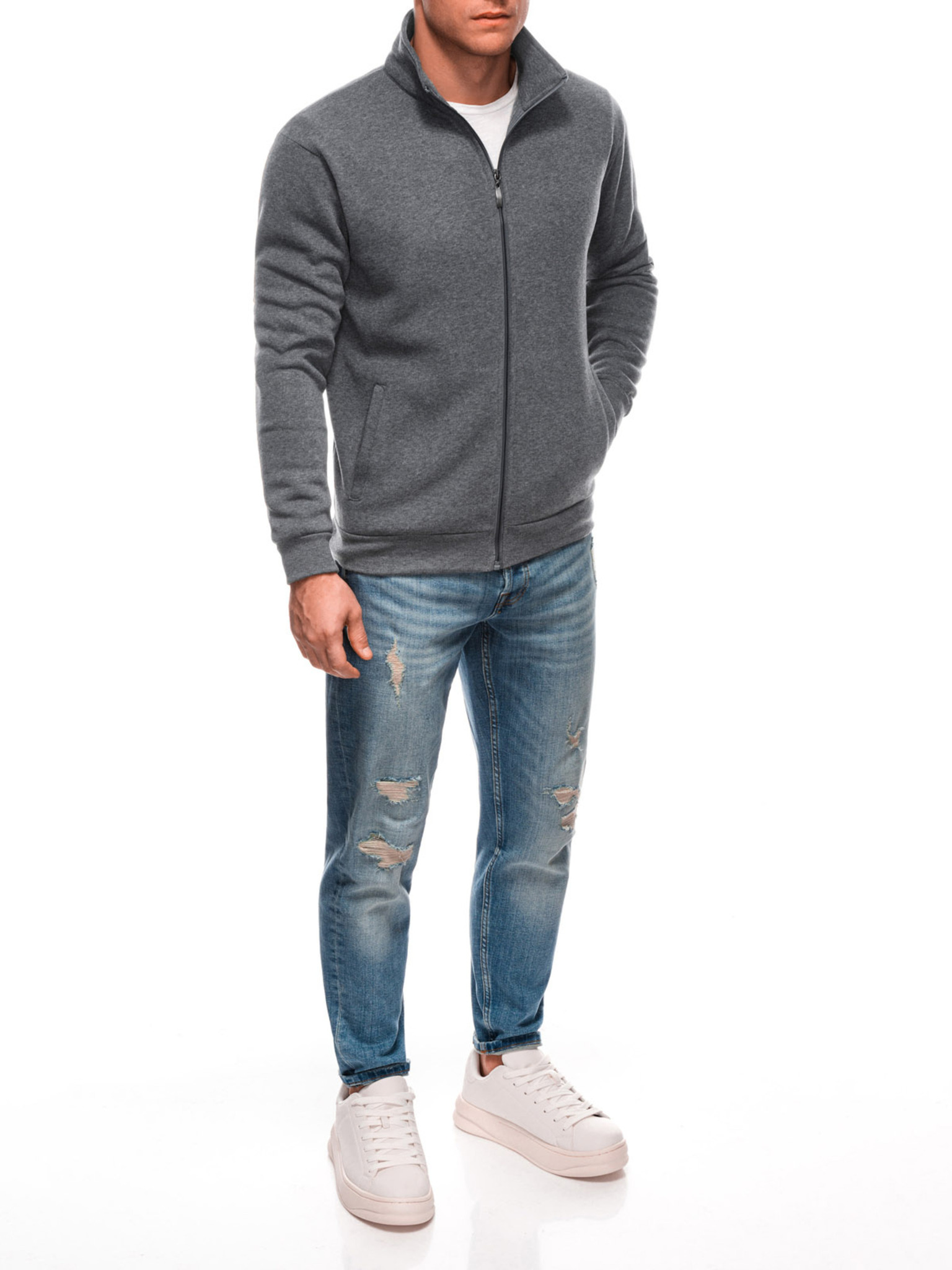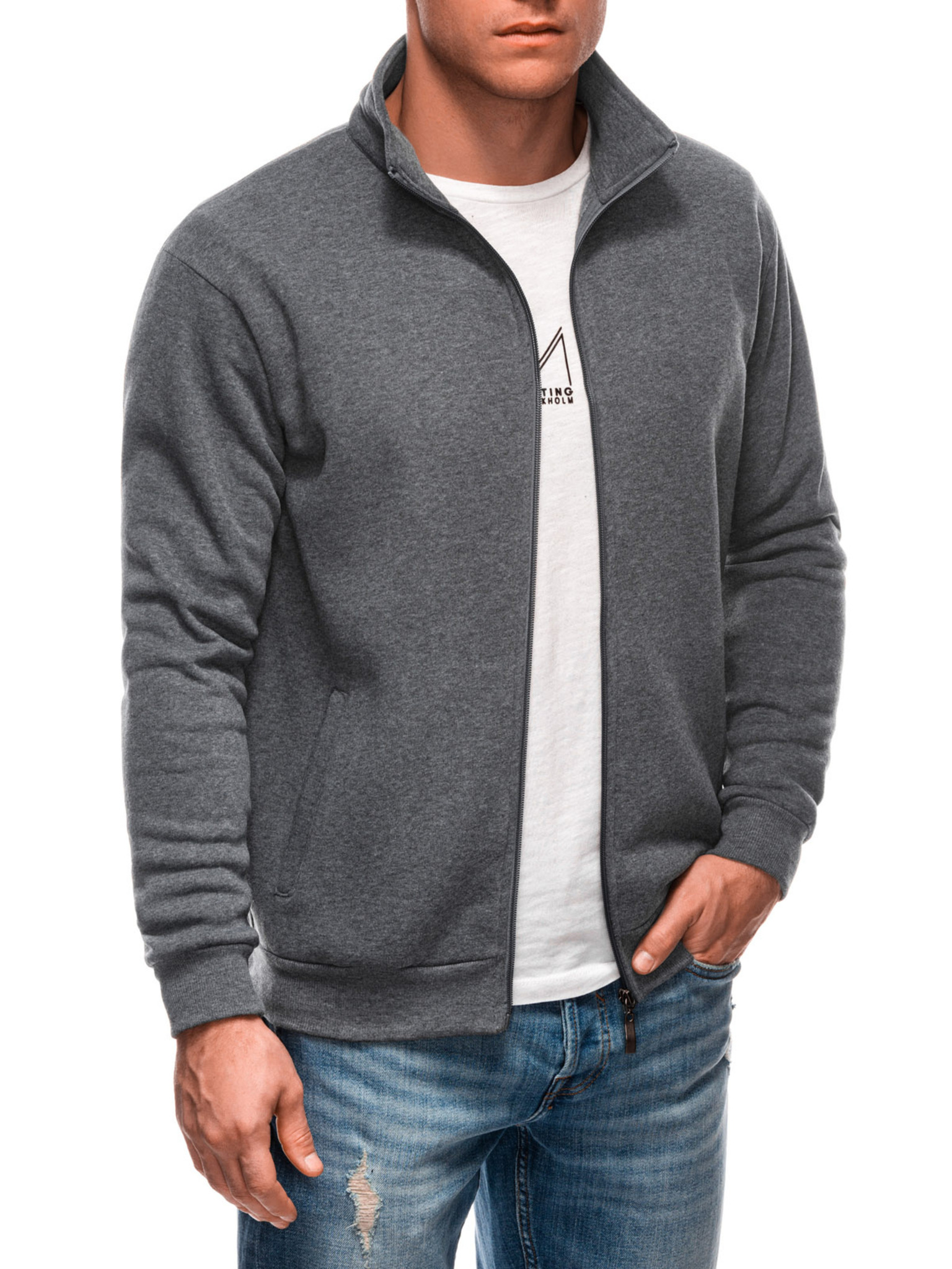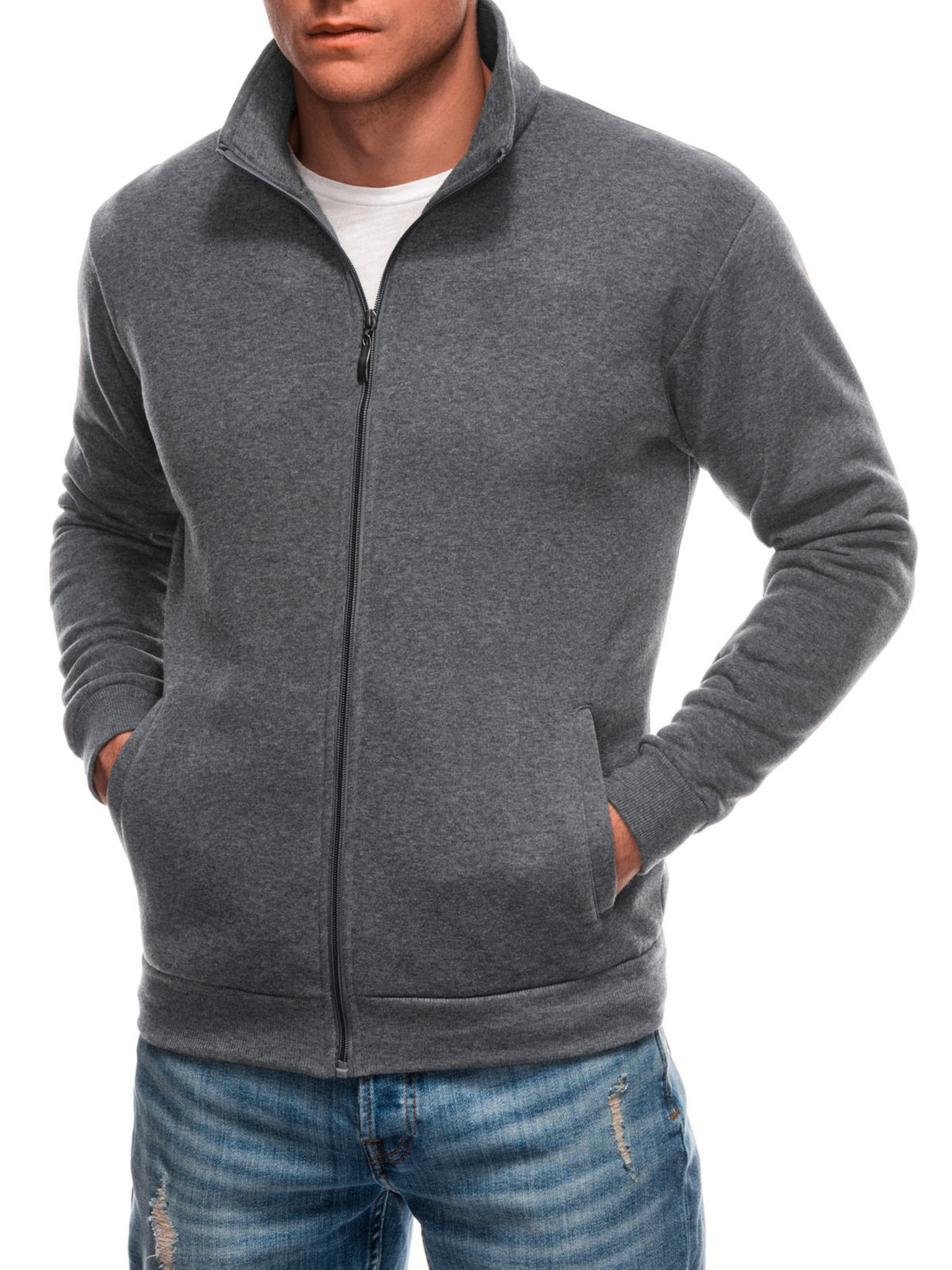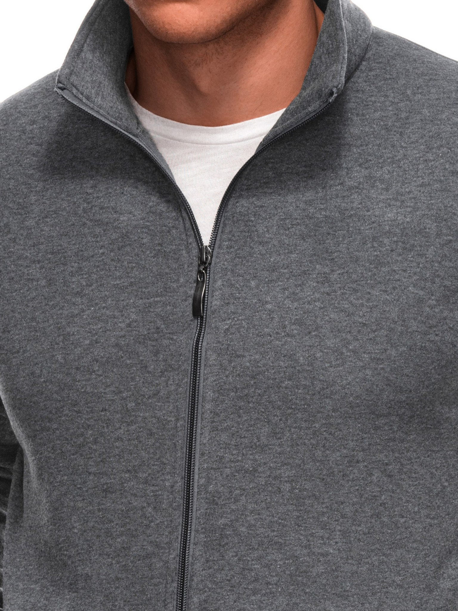 Мъжки суитшърт с висока яка и ленти - сив меланж