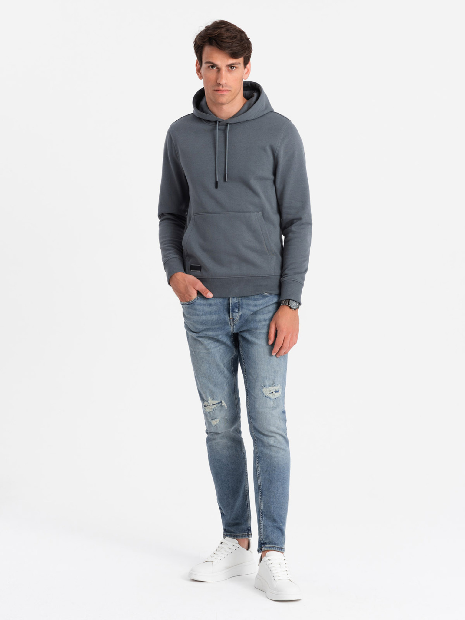 Мъжки памучен суитчър с качулка BASIC Ombre Clothing