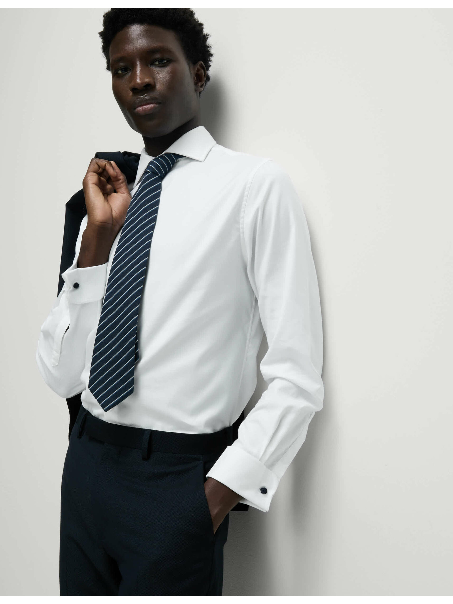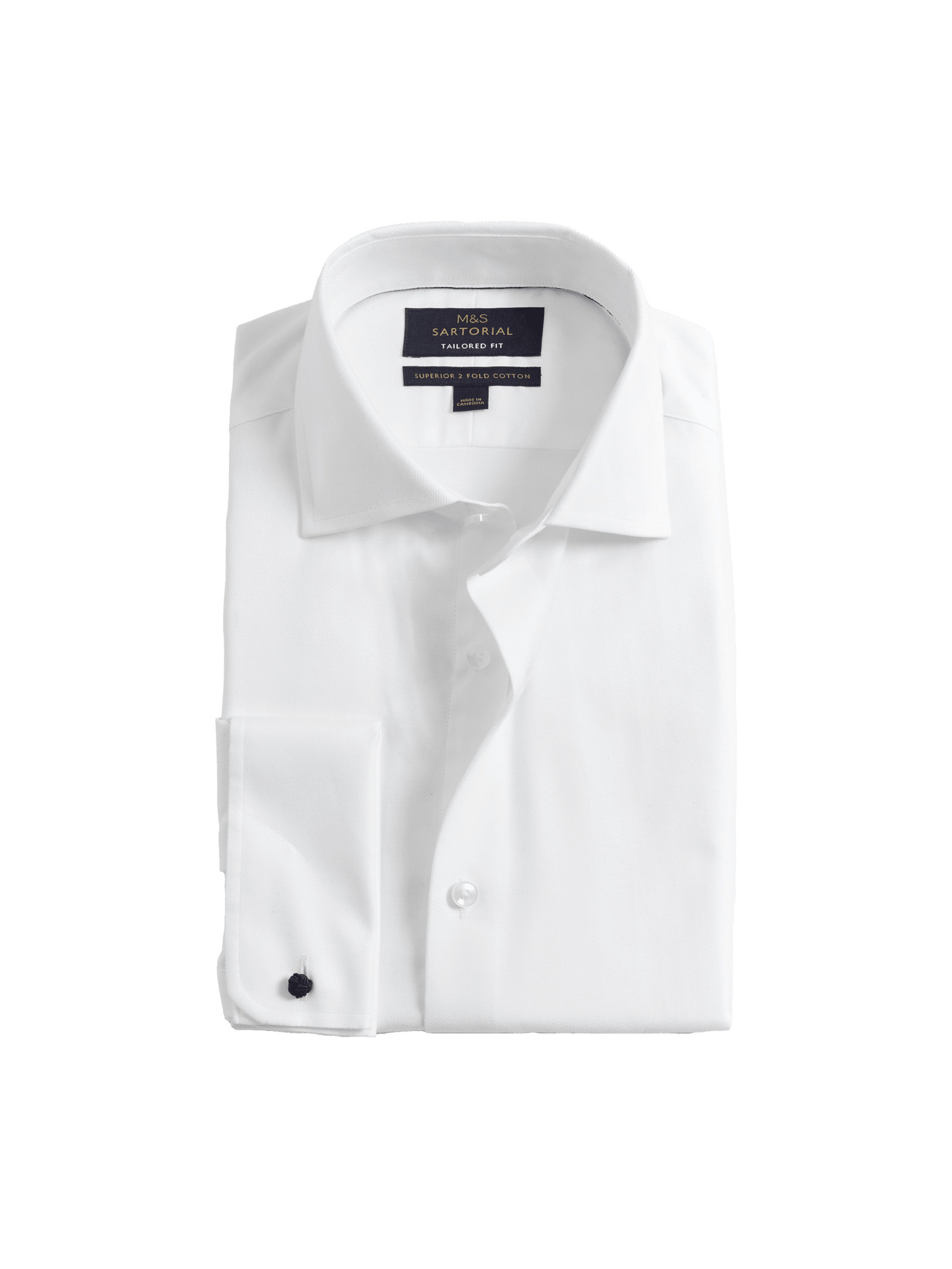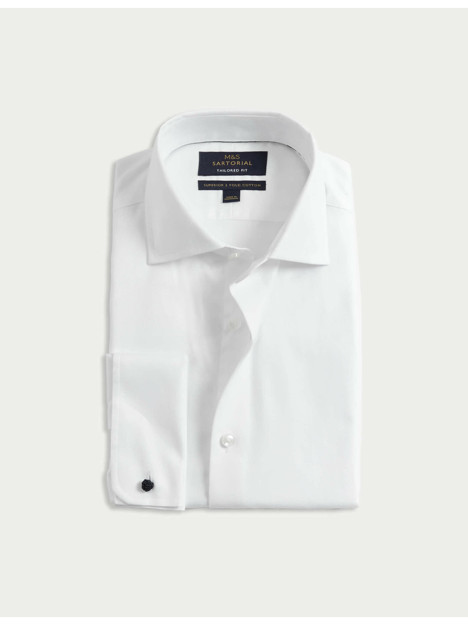 Луксозна памучна риза с двойни маншети с тясна кройка Marks & Spencer в бяло