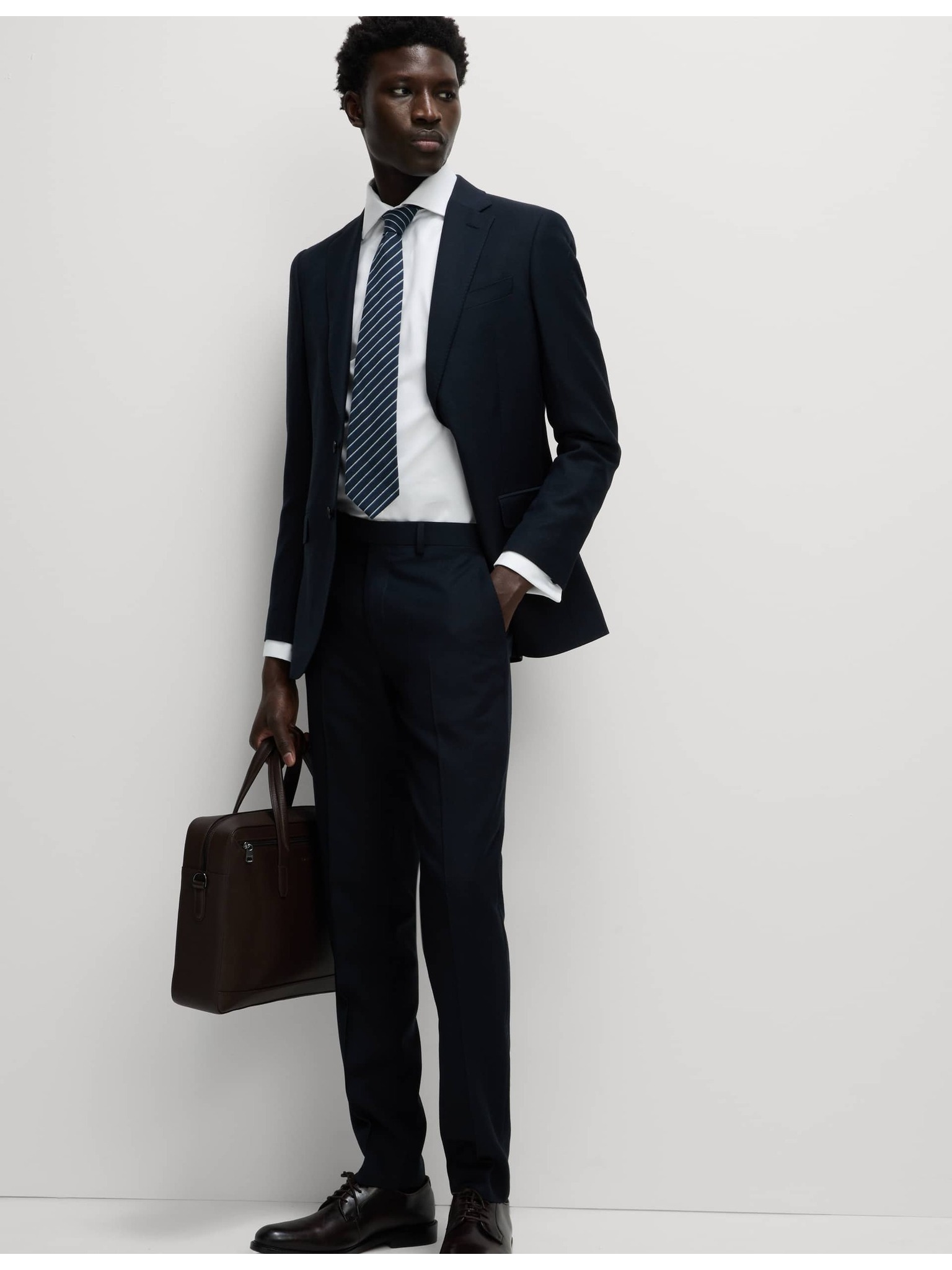 Риза с тесен силует и вратовръзка, лесна за гладене Marks & Spencer синя