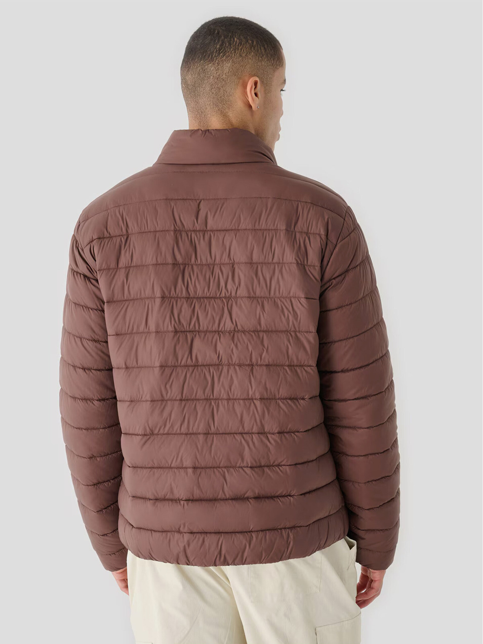Мъжко яке с висока яка и качулка светлокафяво Ombre Clothing