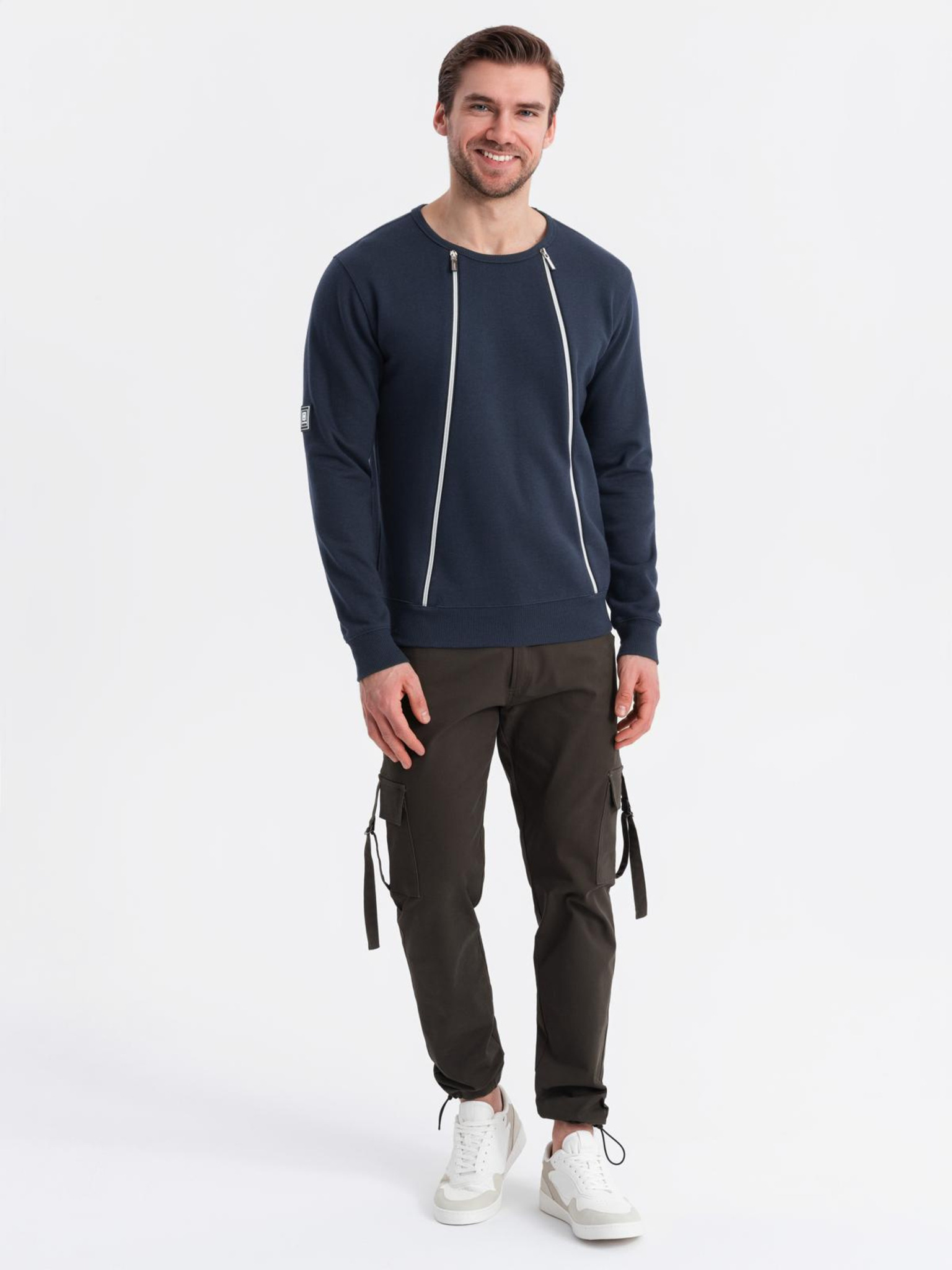 Мъжки суитшърт с висока яка и ленти - маслинен