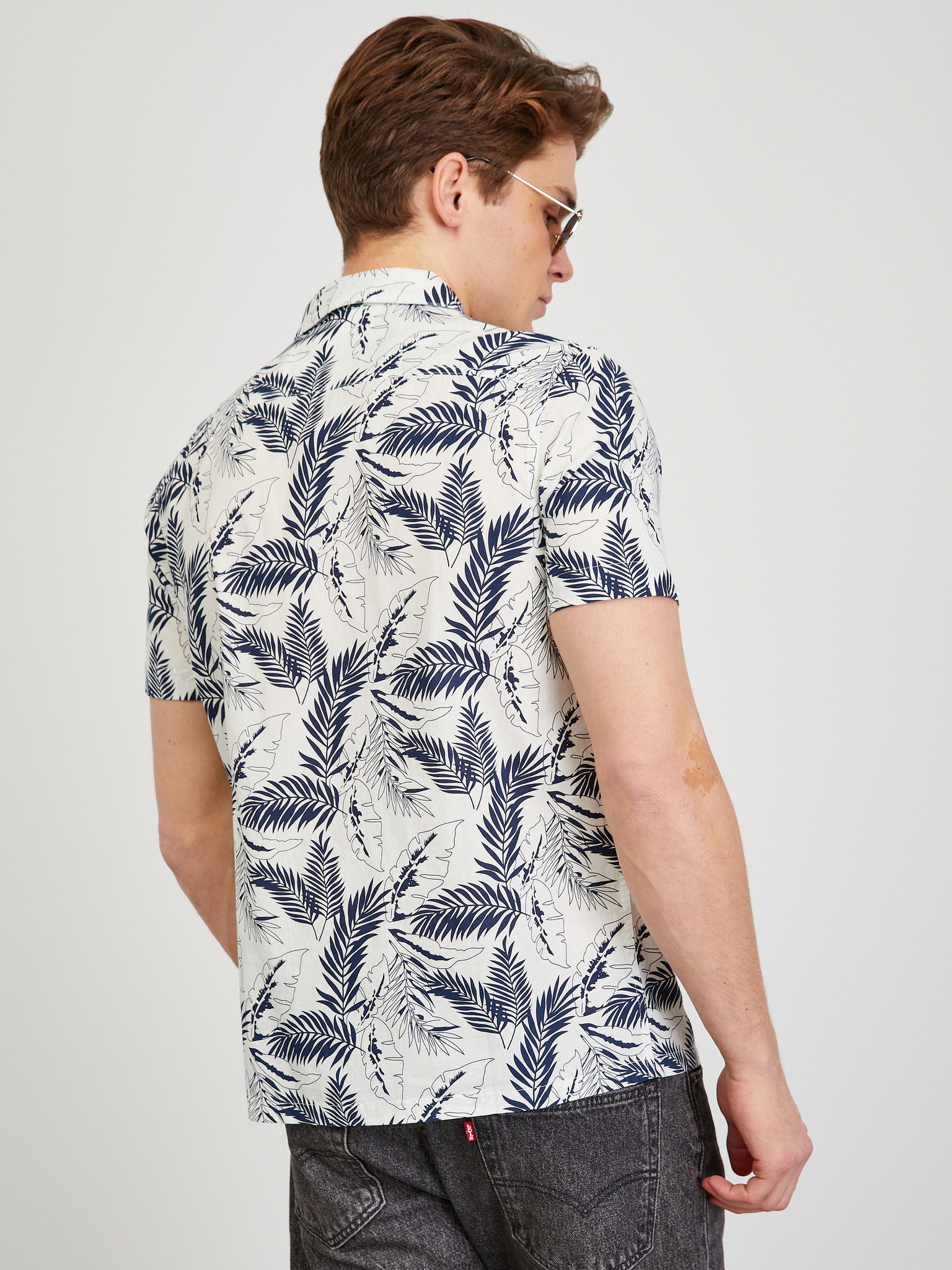 Бяла шарена мъжка риза с къс ръкав Ombre Clothing