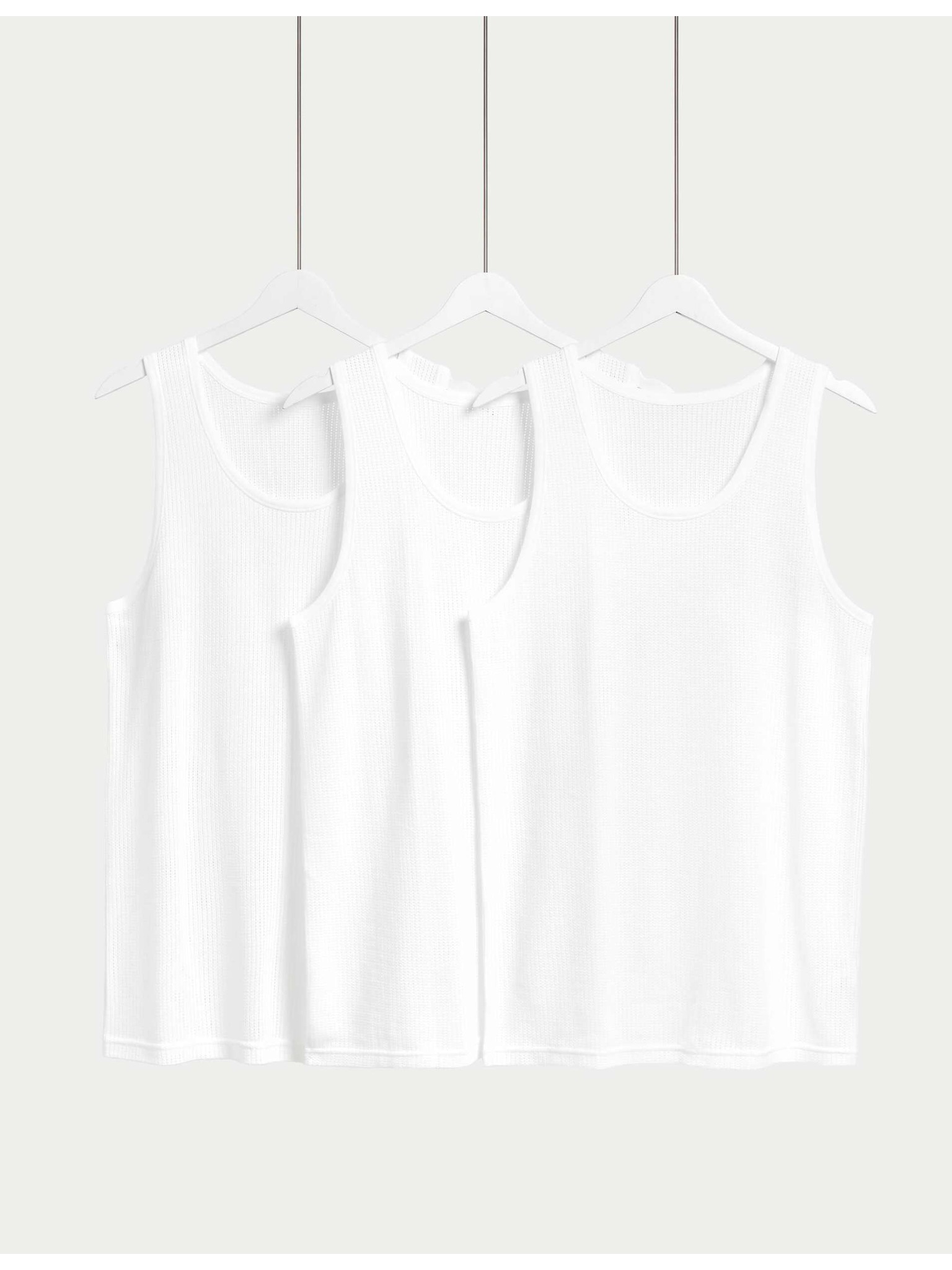 Класически потници от чист памук без ръкави, с мрежа, 3 бр. Marks & Spencer бели