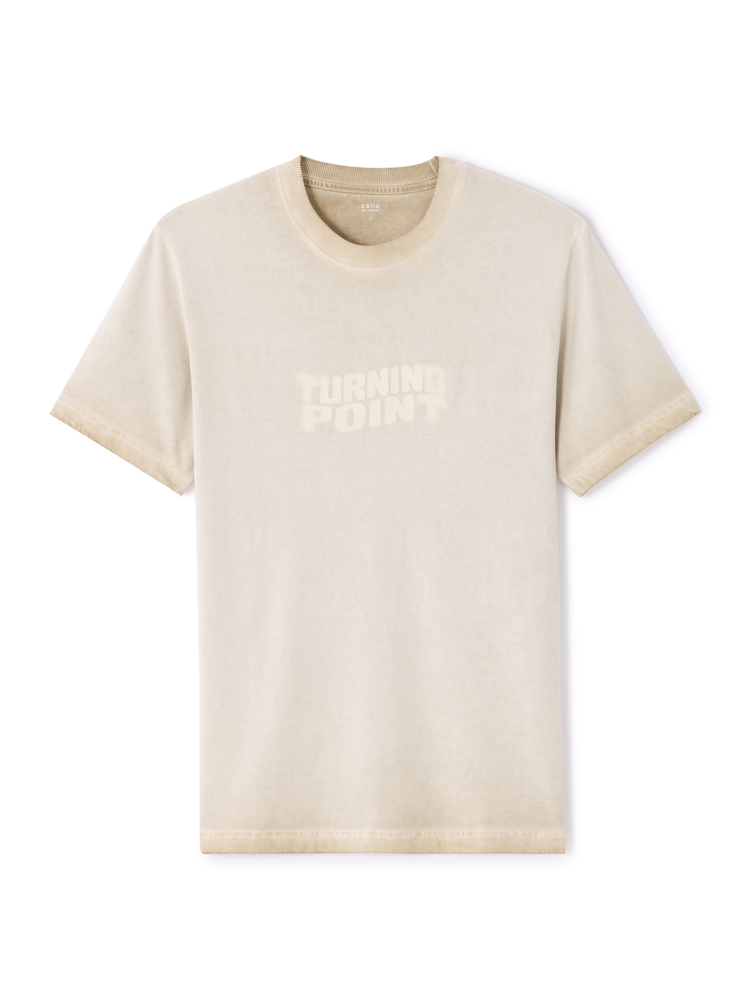 Мъжка памучна тениска с печат и кръгло деколте - бежова