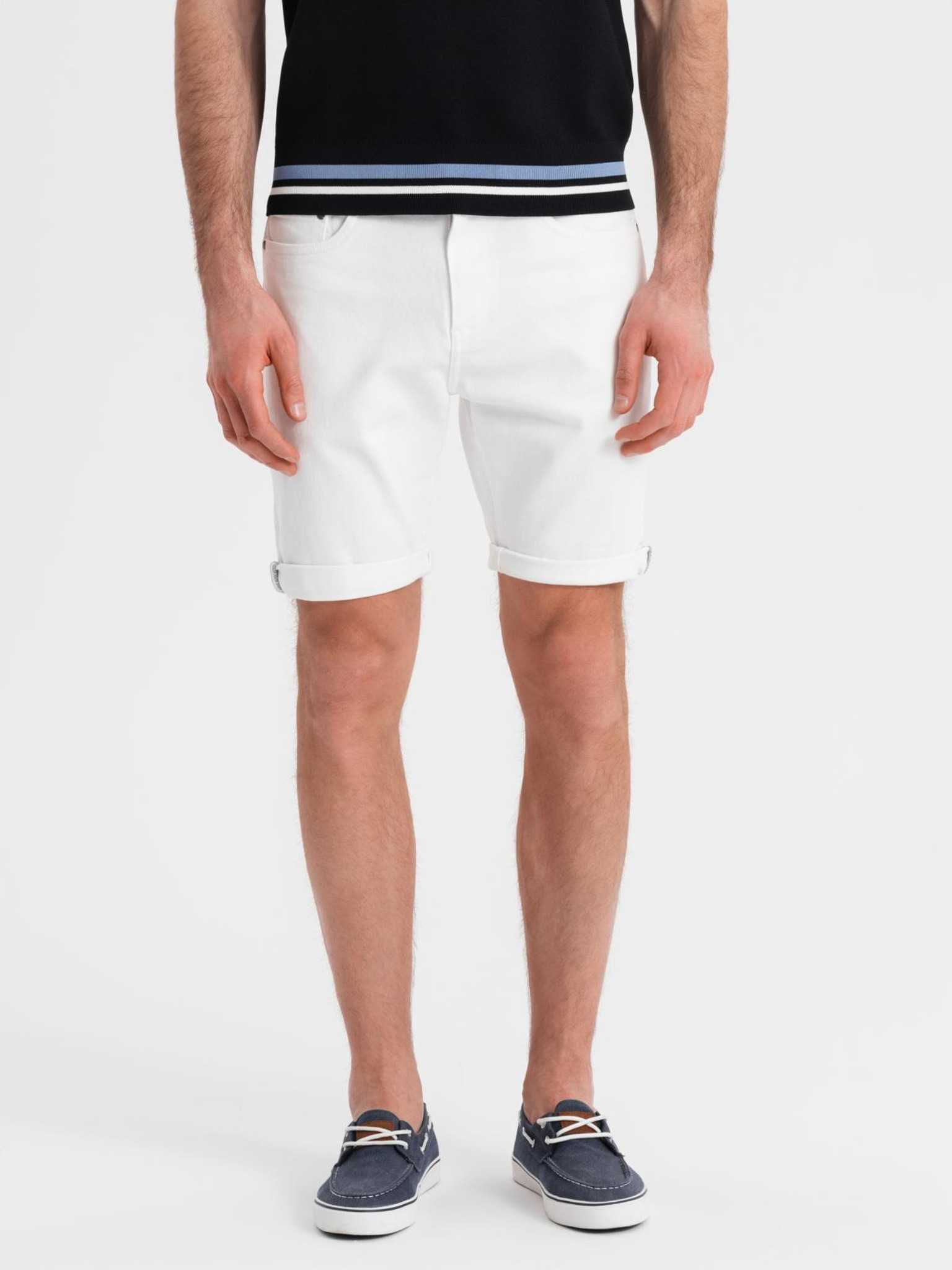 Мъжки дънкови шорти с подгъната крачол - кремаво