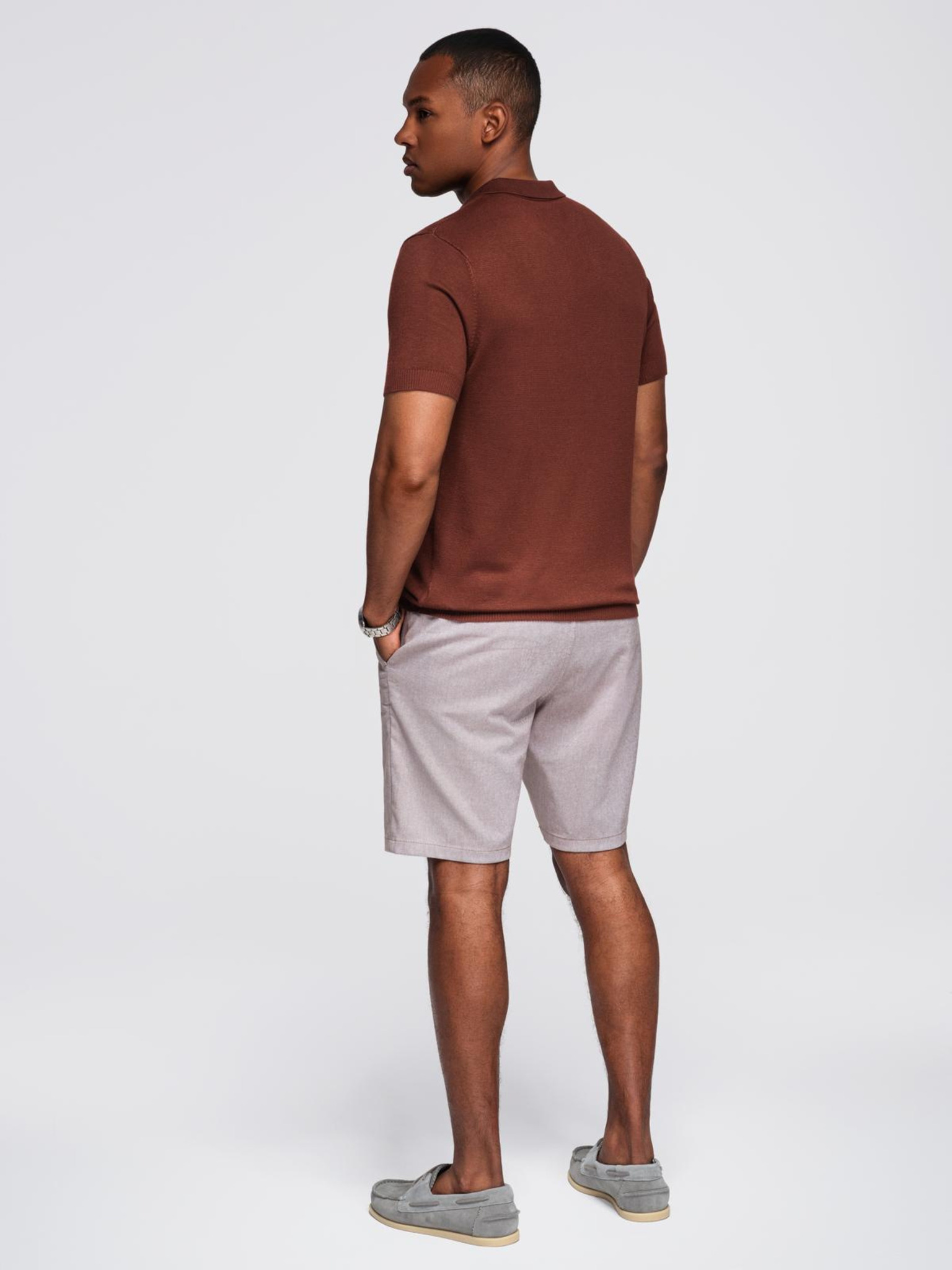 Мъжка плетена риза с фина текстура - светлокафява
