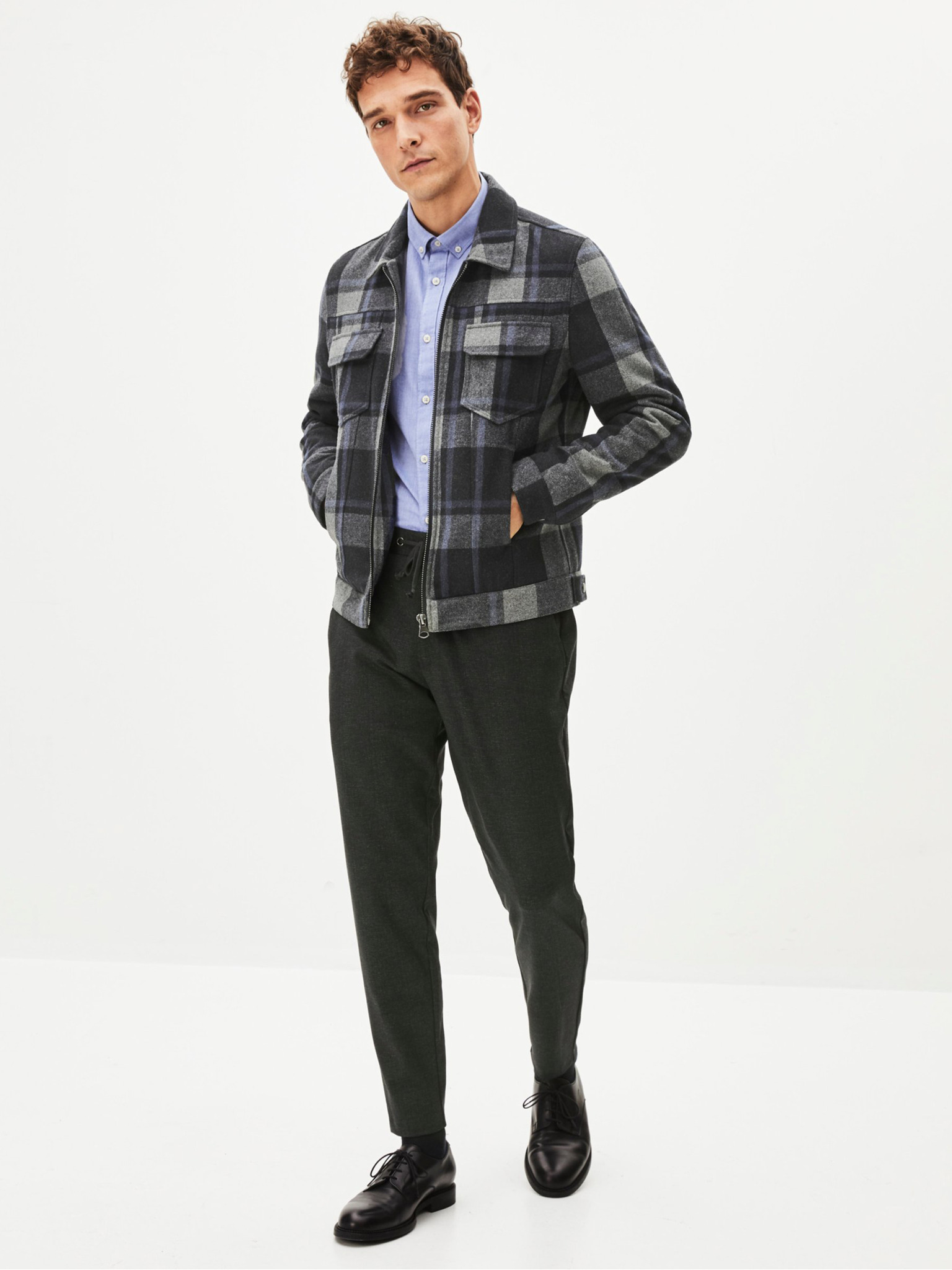 Тъмно сиво мъжко карирано яке Celio Punjab