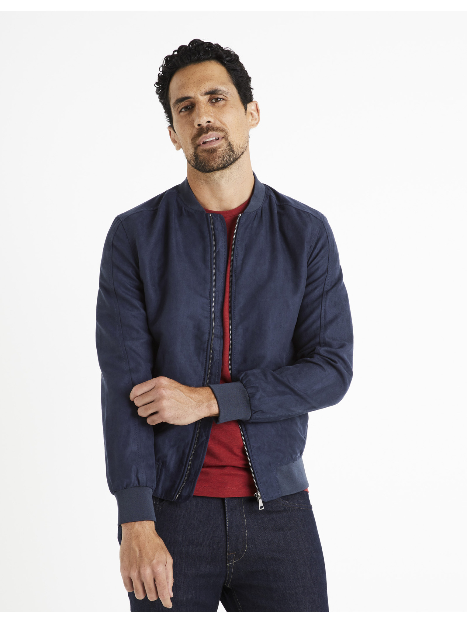 Мъжко лекo жебрирано бомбер - тъмно синьо V4 C644 Ombre Clothing