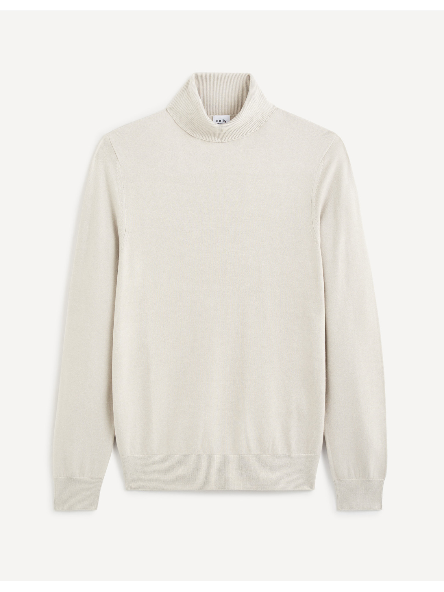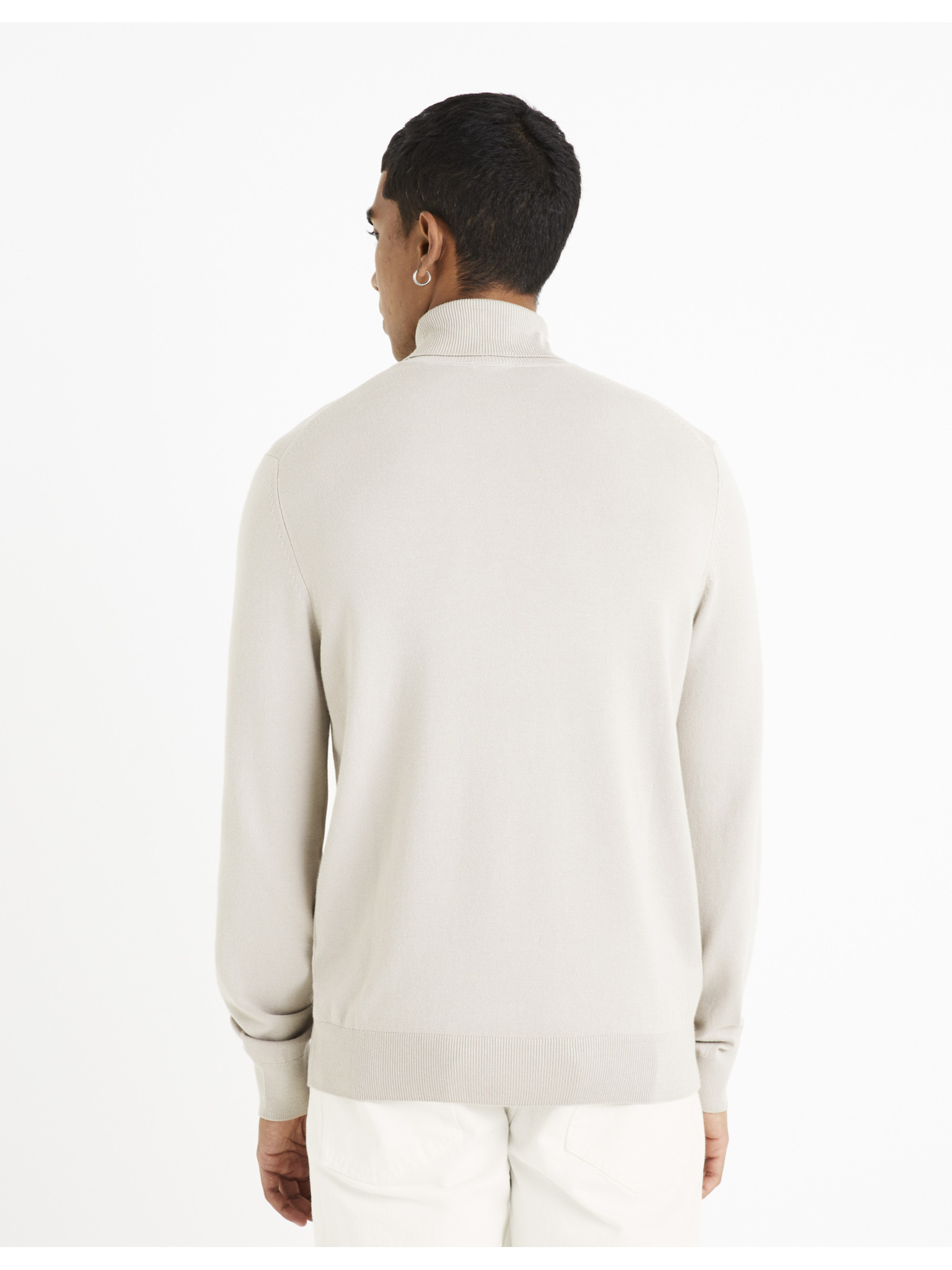 Мъжки ребрест пуловер с копчета към деколтето - бежов V3 OM-SWSW-0182 Ombre Clothing