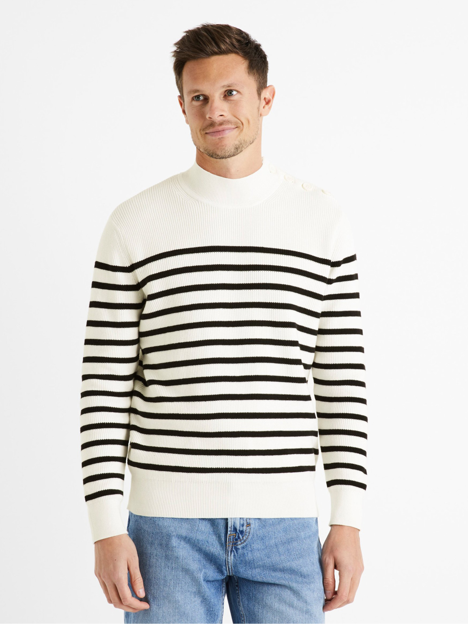Кремав мъжки пуловер със стояща яка Celio Celim