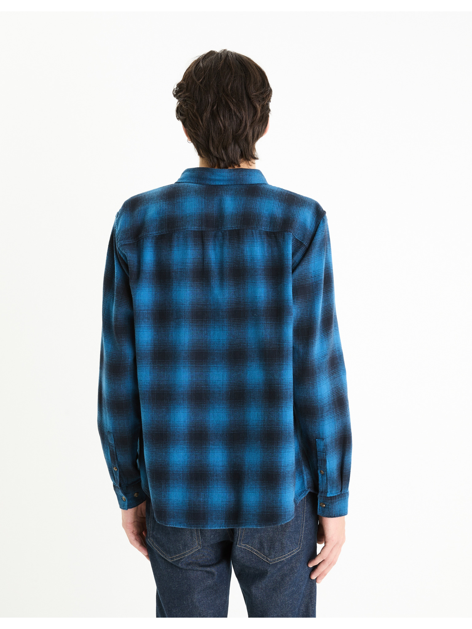 Синя мъжка карирана риза Celio Fabuche