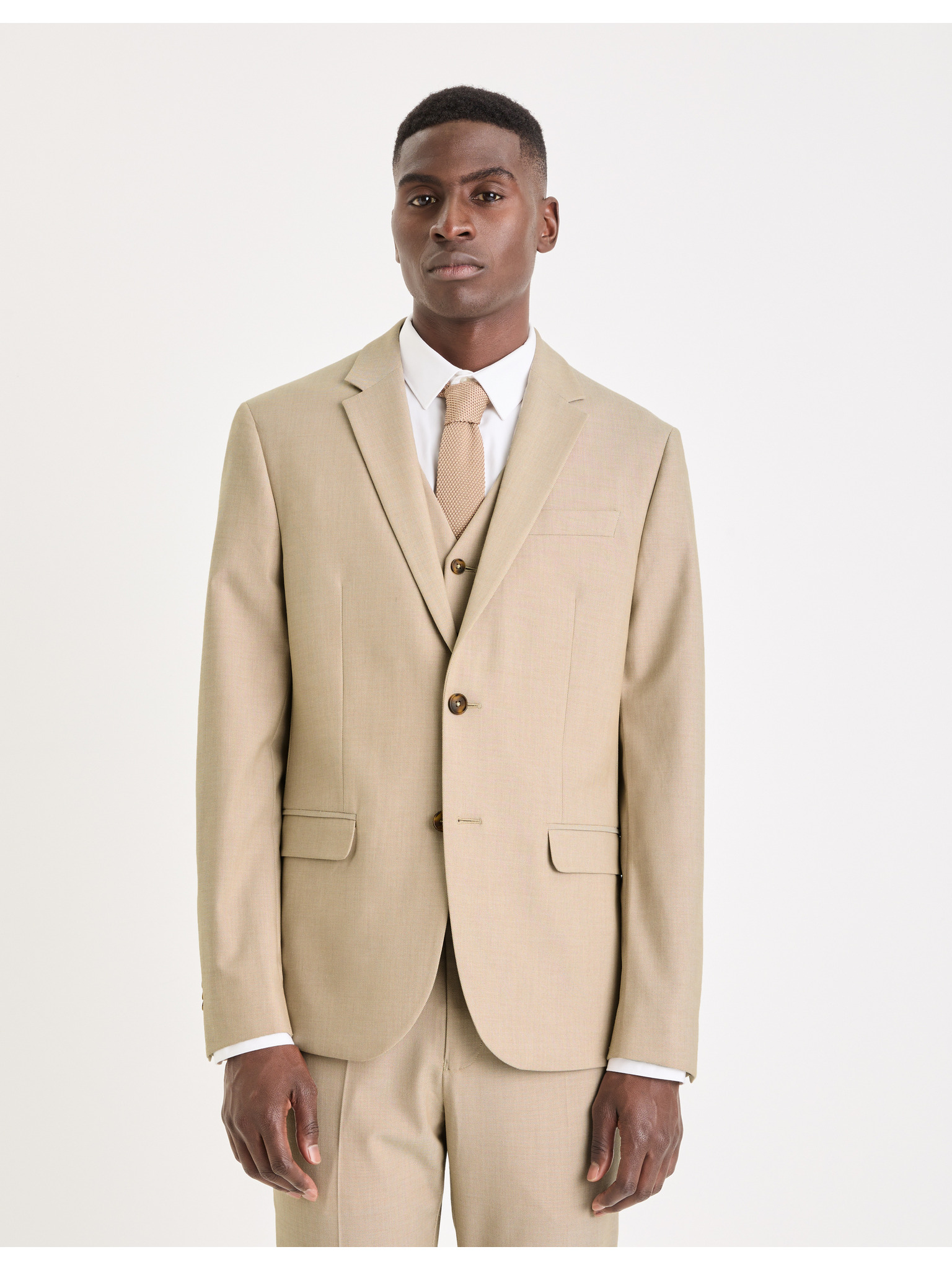 Мъжко бежово сако SLIM от фино структуриран плат