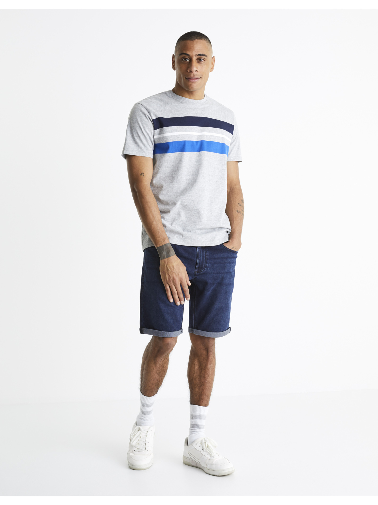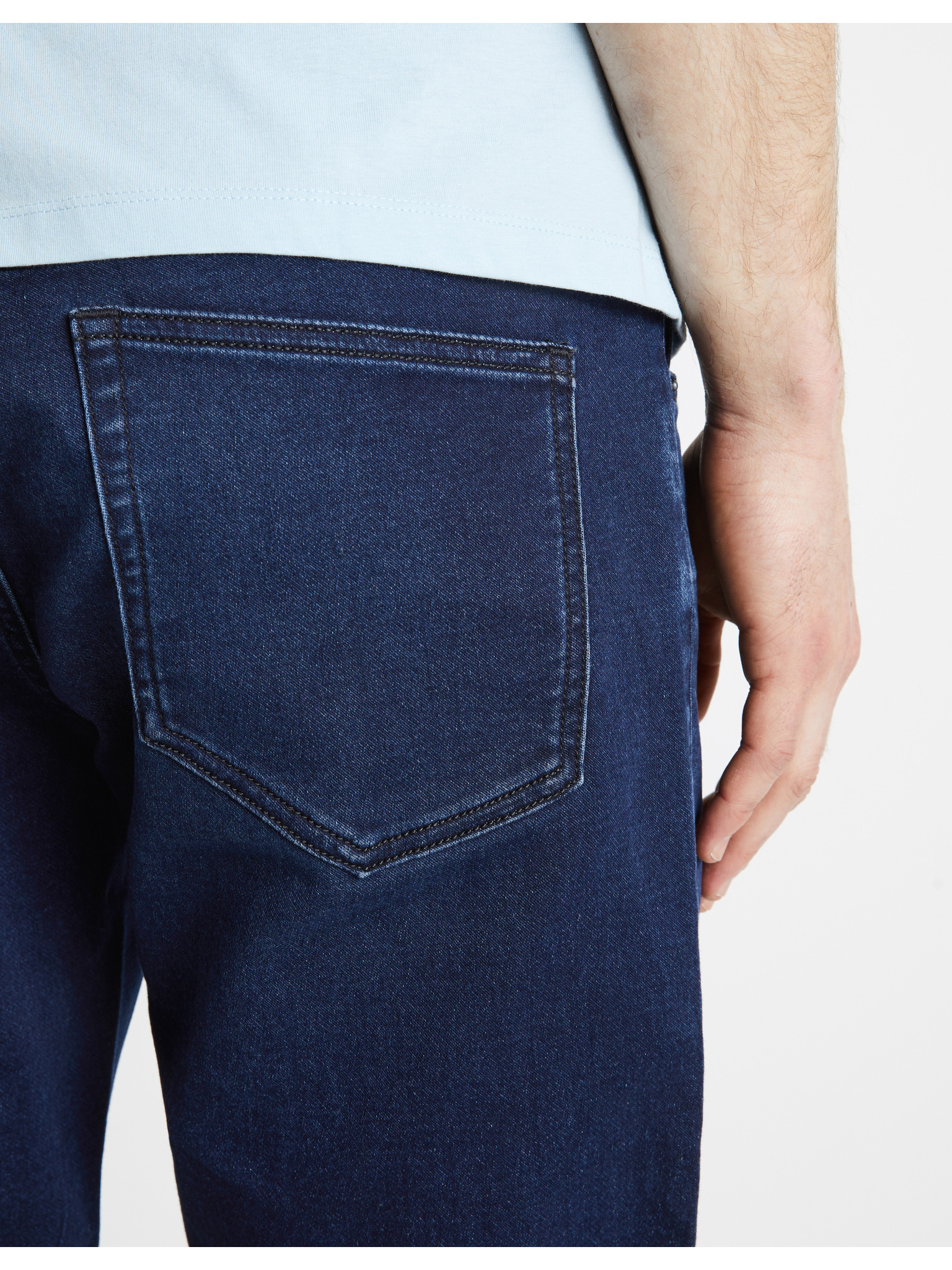 Мъжки къси дънкови панталони с декоративно прошиване - светлосини