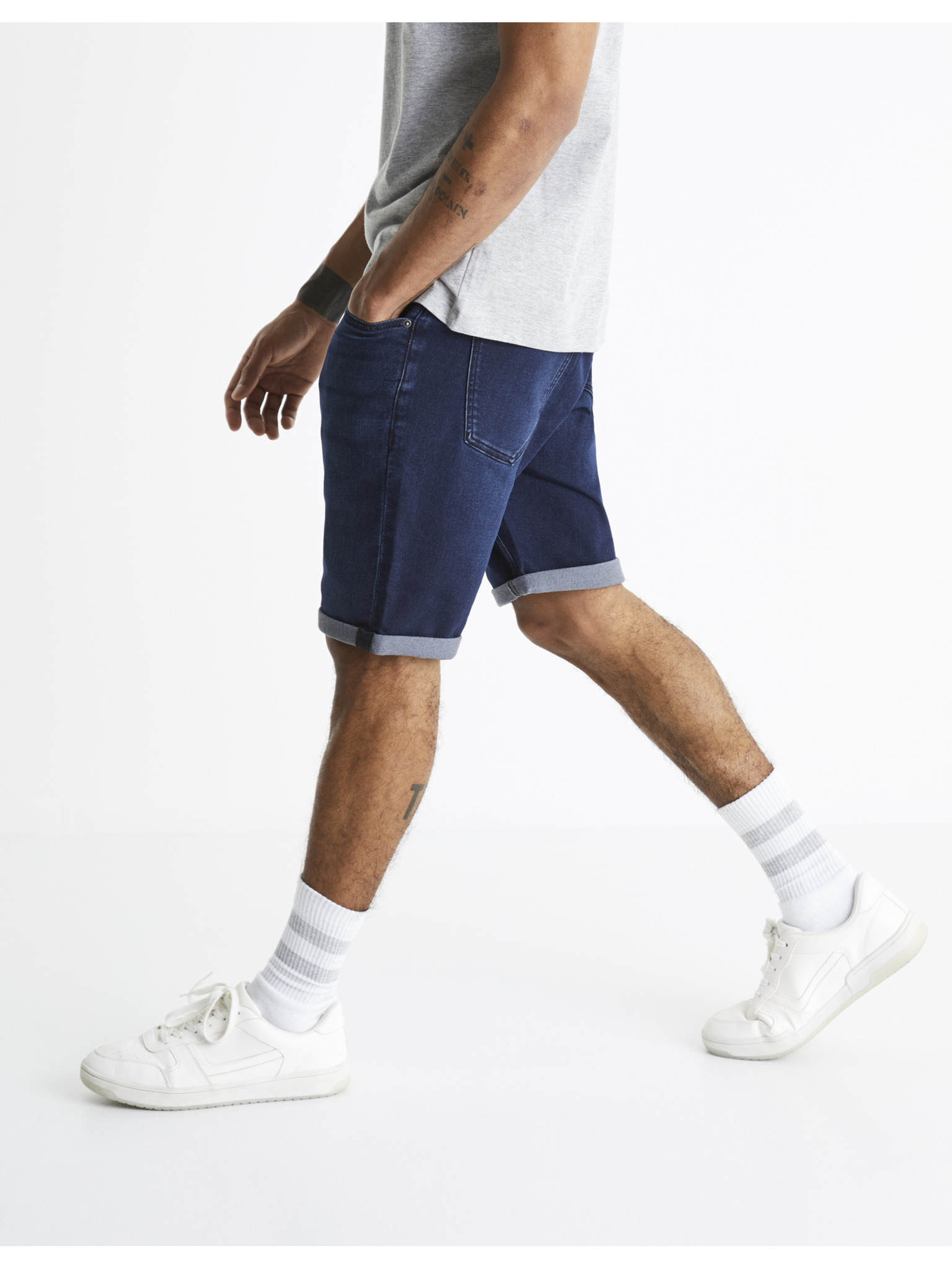 Тъмно сини мъжки къси панталони от деним Ombre Clothing