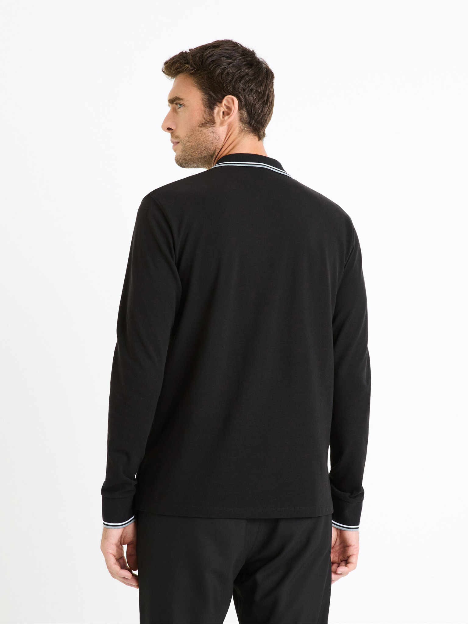 Мъжка плетена поло риза без копчета - черна