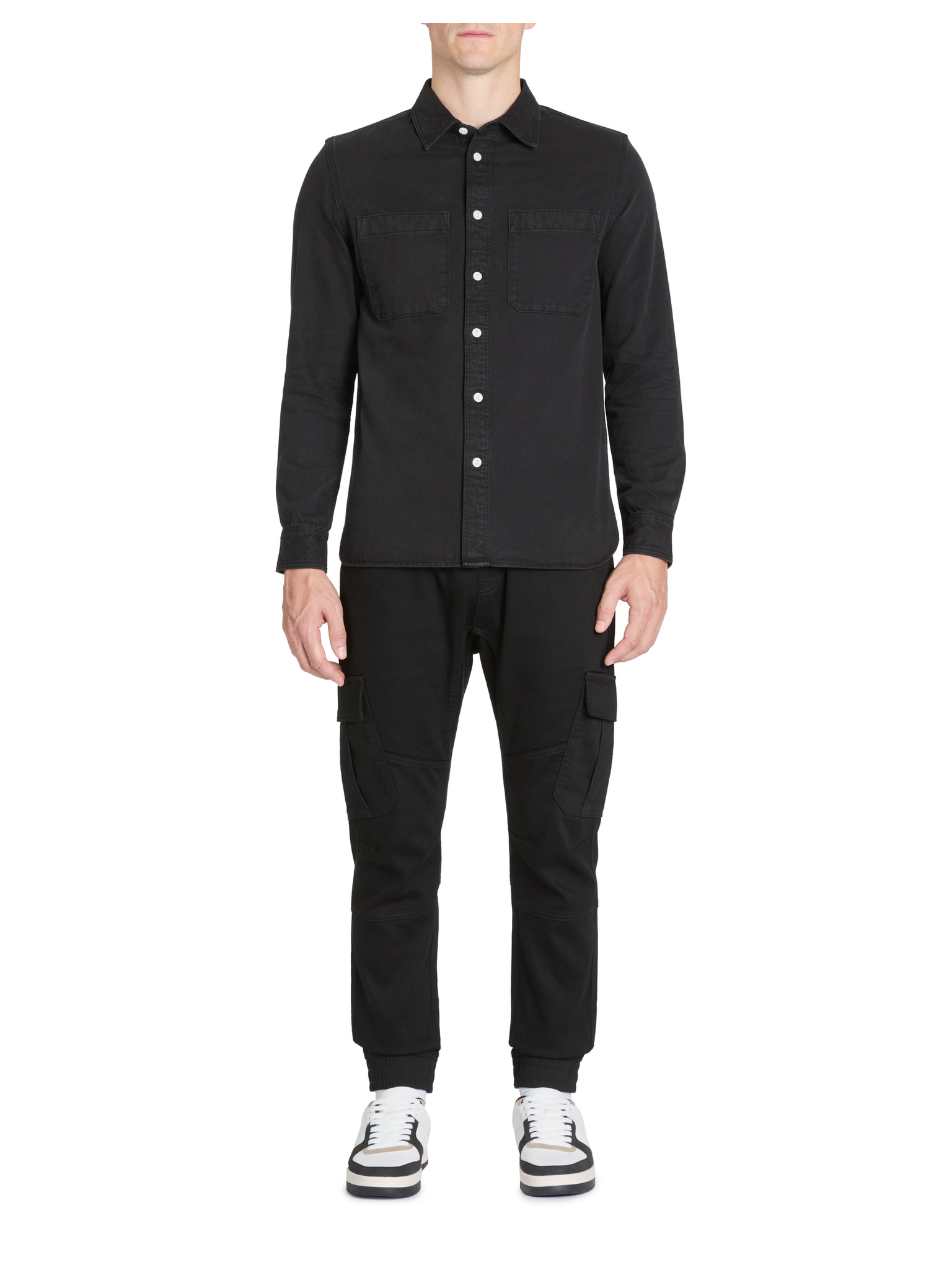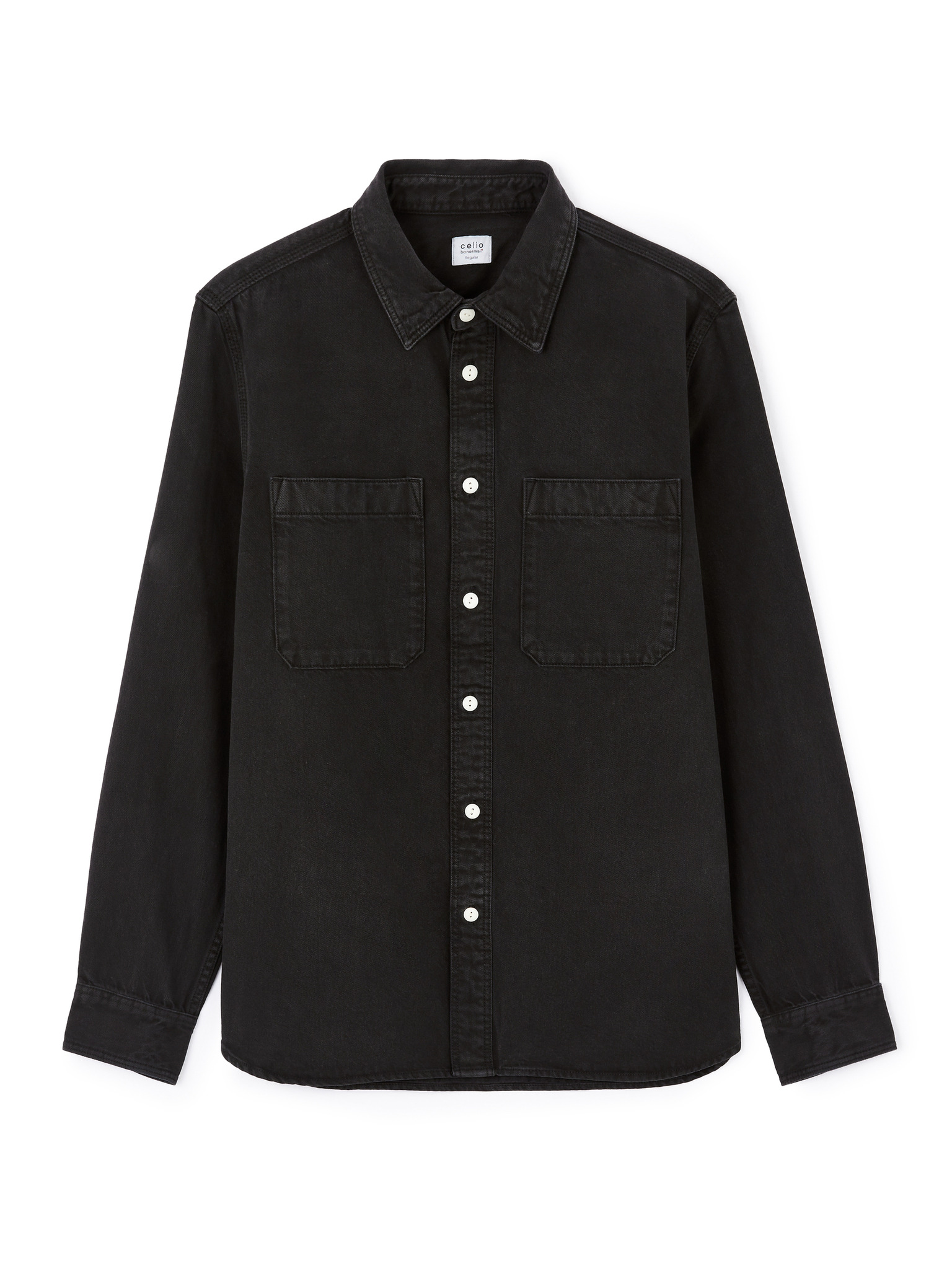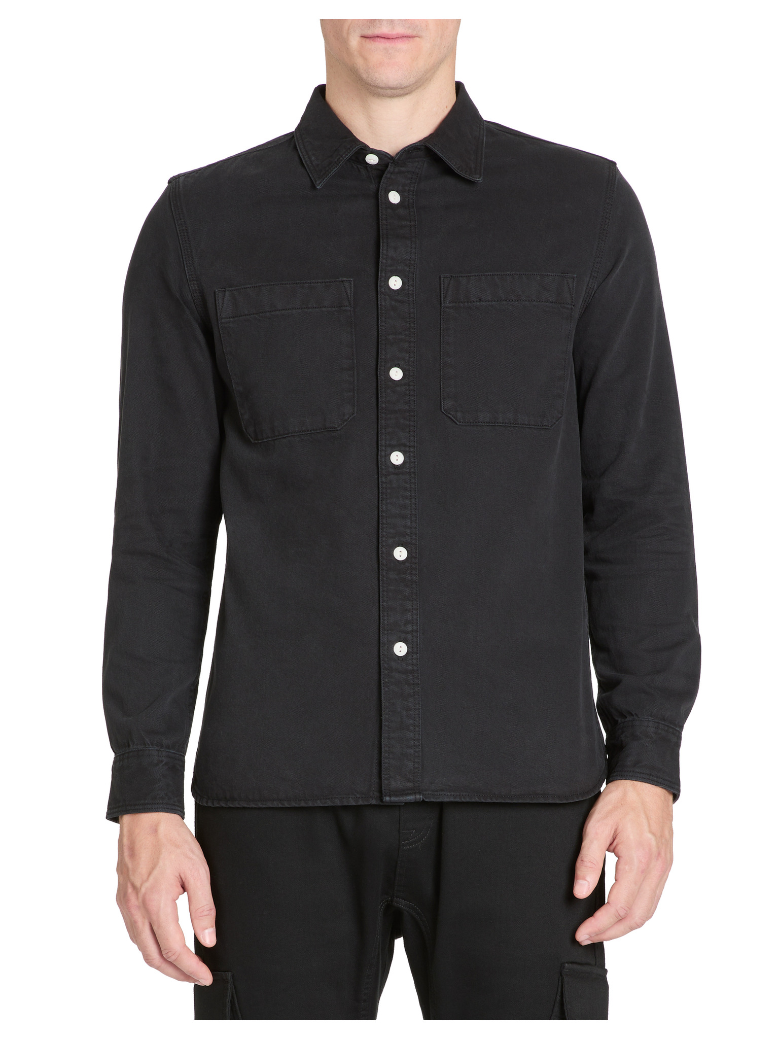 Мъжка дънкова риза на копчета с джобове - черно V3 OM-SHDS-0210 Ombre Clothing