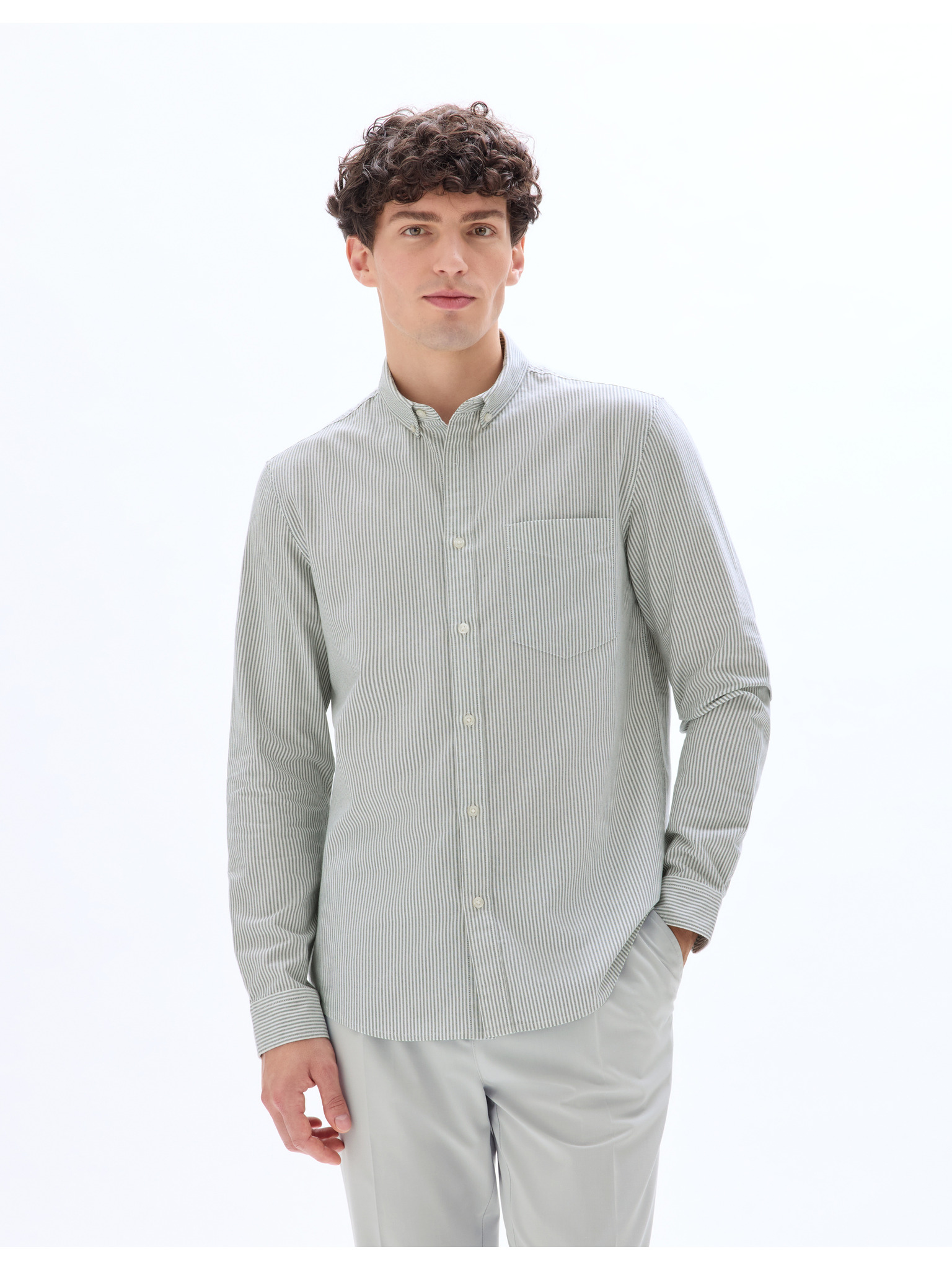 Мъжка памучна риза с права яка и джоб REGULAR FIT - каки