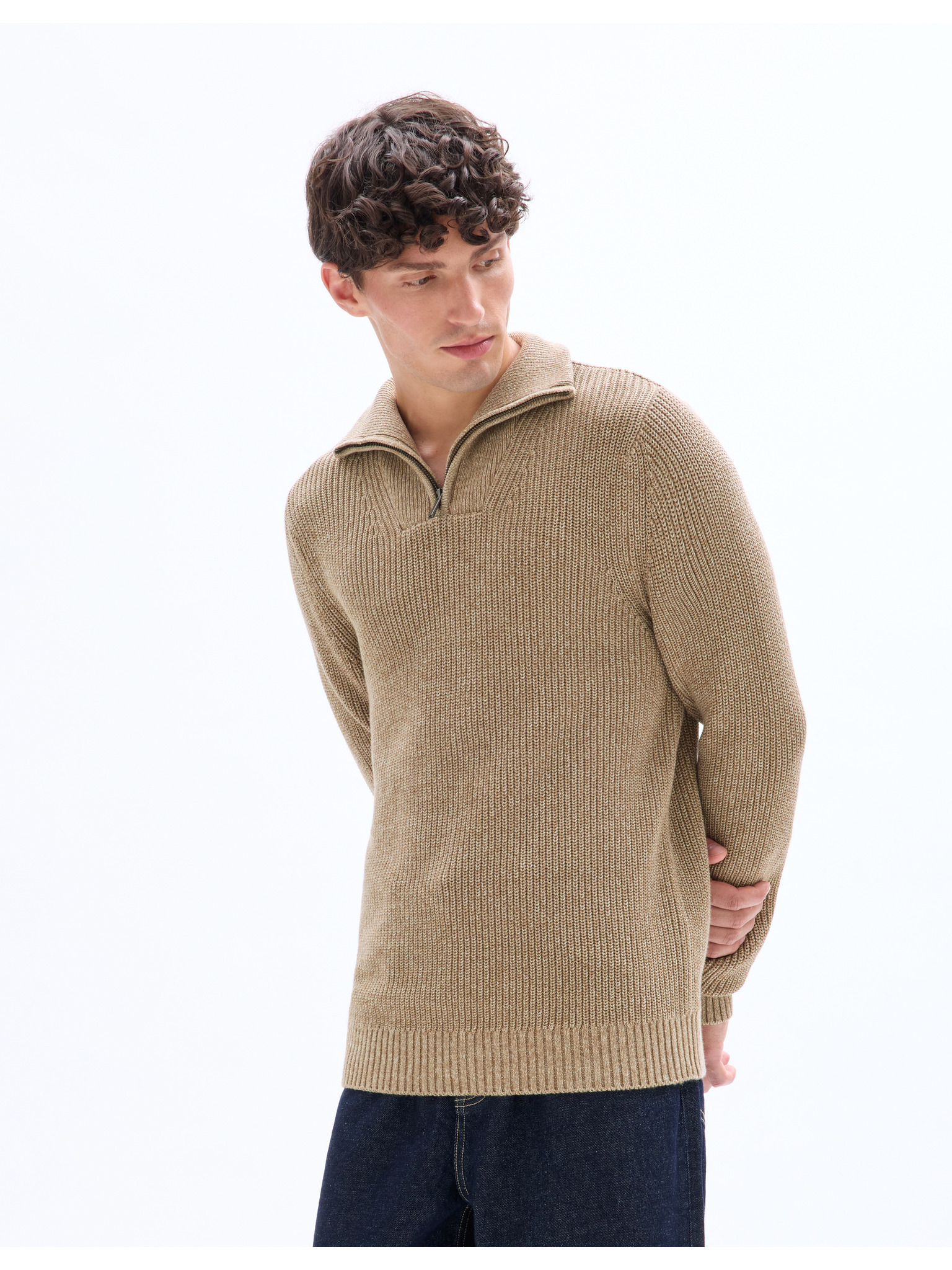 Мъжки бял и бежов пуловер от мериносова вълна Celio Cemeribloc