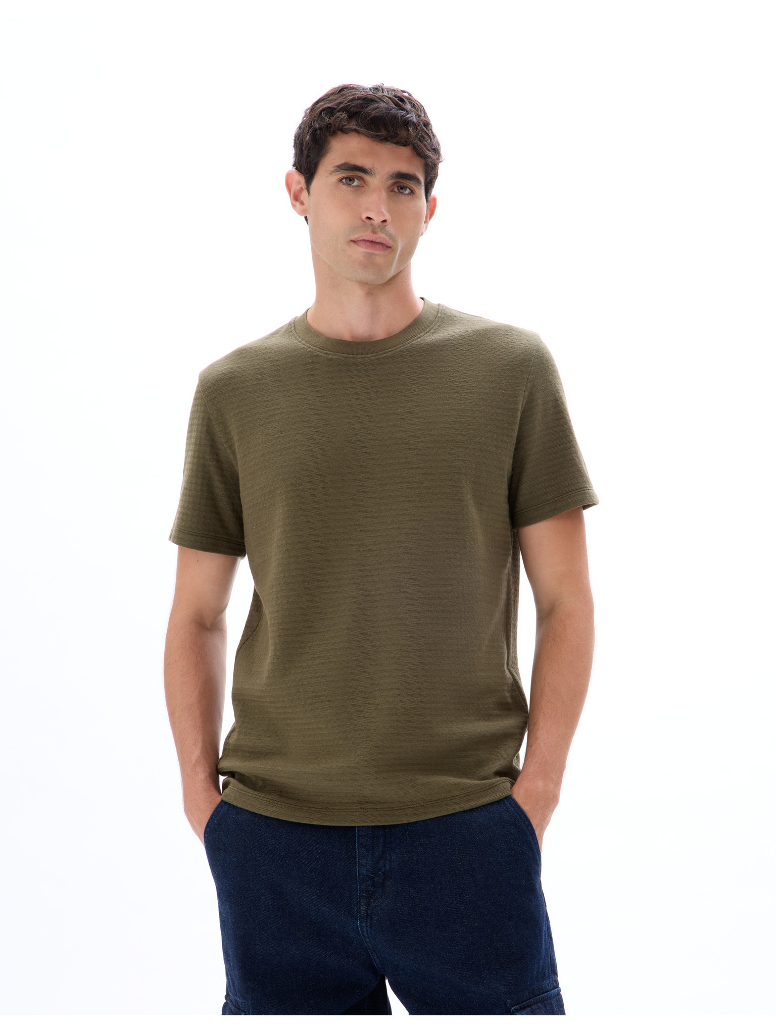 Мъжка тениска с ефект на изпиране - маслинена V4 OM-TSWT-0116 Ombre Clothing